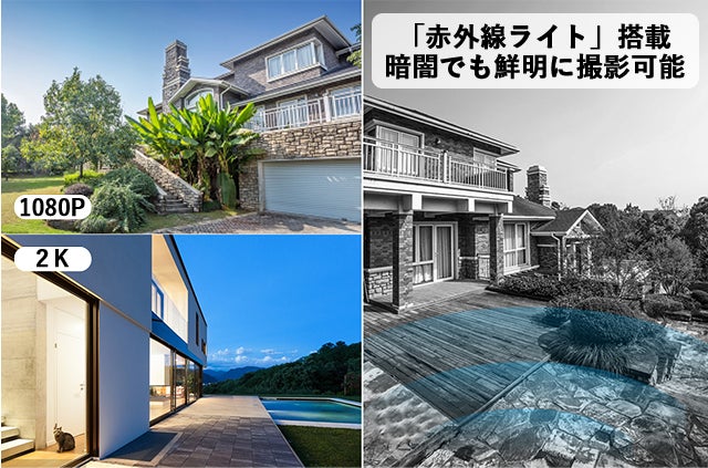 画質は2K(2560×1440)の高解像度。夜間でも鮮明な撮影が可能な赤外線暗視機能を搭載。特に防犯や安全が気になる暗闇でもしっかり見守ります。
