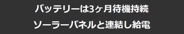 また、別売りのソーラーパネルと連結することで、充電の手間をかけずに連続自動給電が可能となります!