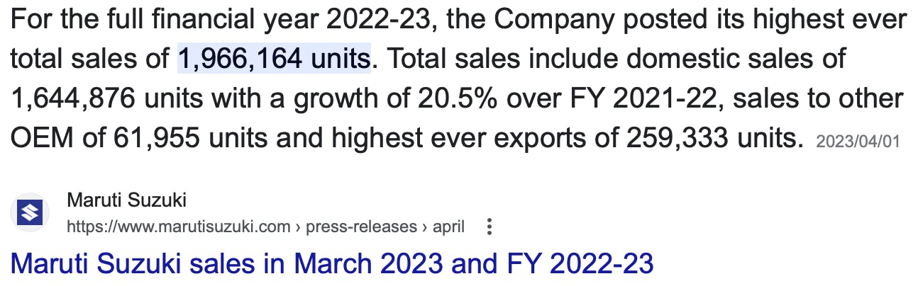 例えば、皆様もご存じの自動車メーカー『スズキ』の2022年の日本国内販売台数は60万台でした。これは過去4年間連続の"最低販売台数"を記録しています。ちなみに販売台数一位はトヨタで129万台。第2位のスズキと2倍以上の差があるのです。引用 https://toyokeizai.net/articles/-/653898