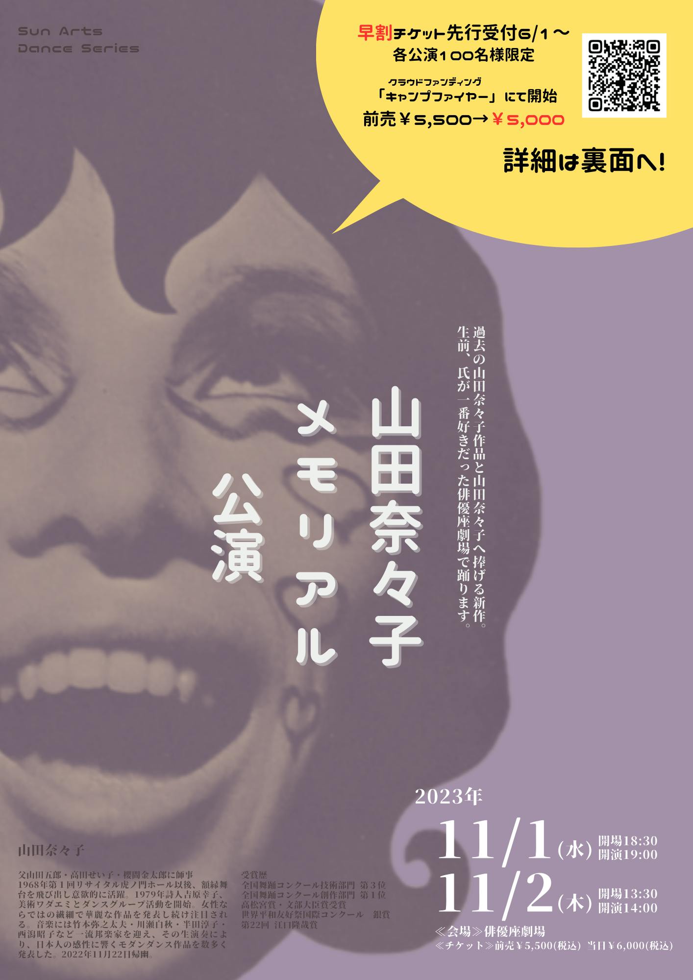 『モスラ・ガールの一人になったり、現代詩の吉原幸子さんとも交流した審美の舞姫・山田奈々子は戦後日本の文化史の中でも大事な一頁です。弟・山田真二と戦後を歩み、その原点は帝国劇場~浅草オペラまでさかのぼる高田せい子や父・山田五郎にも遡ります。偉大な舞踊家を追悼し未来へ語り継ぐ大事な企画です。是非とも応援し集い、その存在を語り合いましょう。舞踊批評家 吉田悠樹彦』