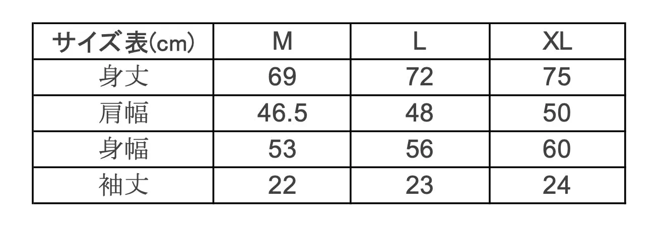※ご支援時、以下のサイズ表を参考にして備考欄にご希望のサイズ(M、L、XLのいずれか)を必ずご記入ください。
