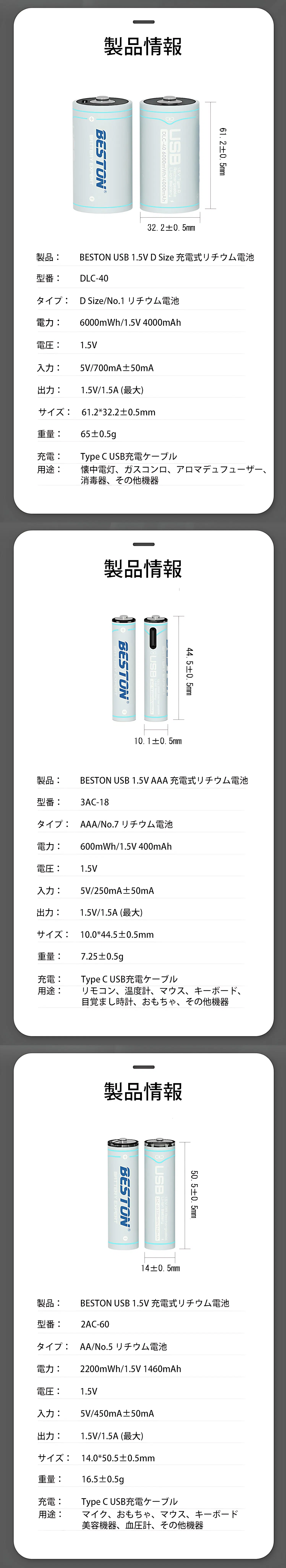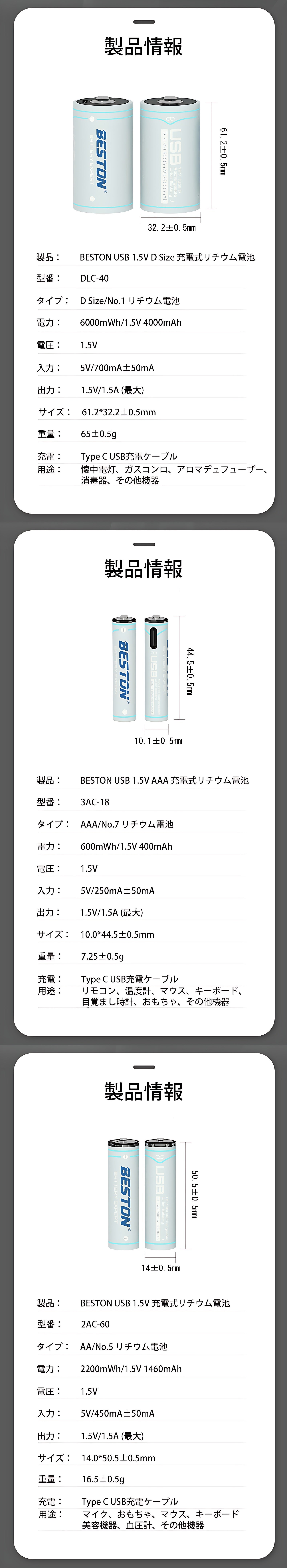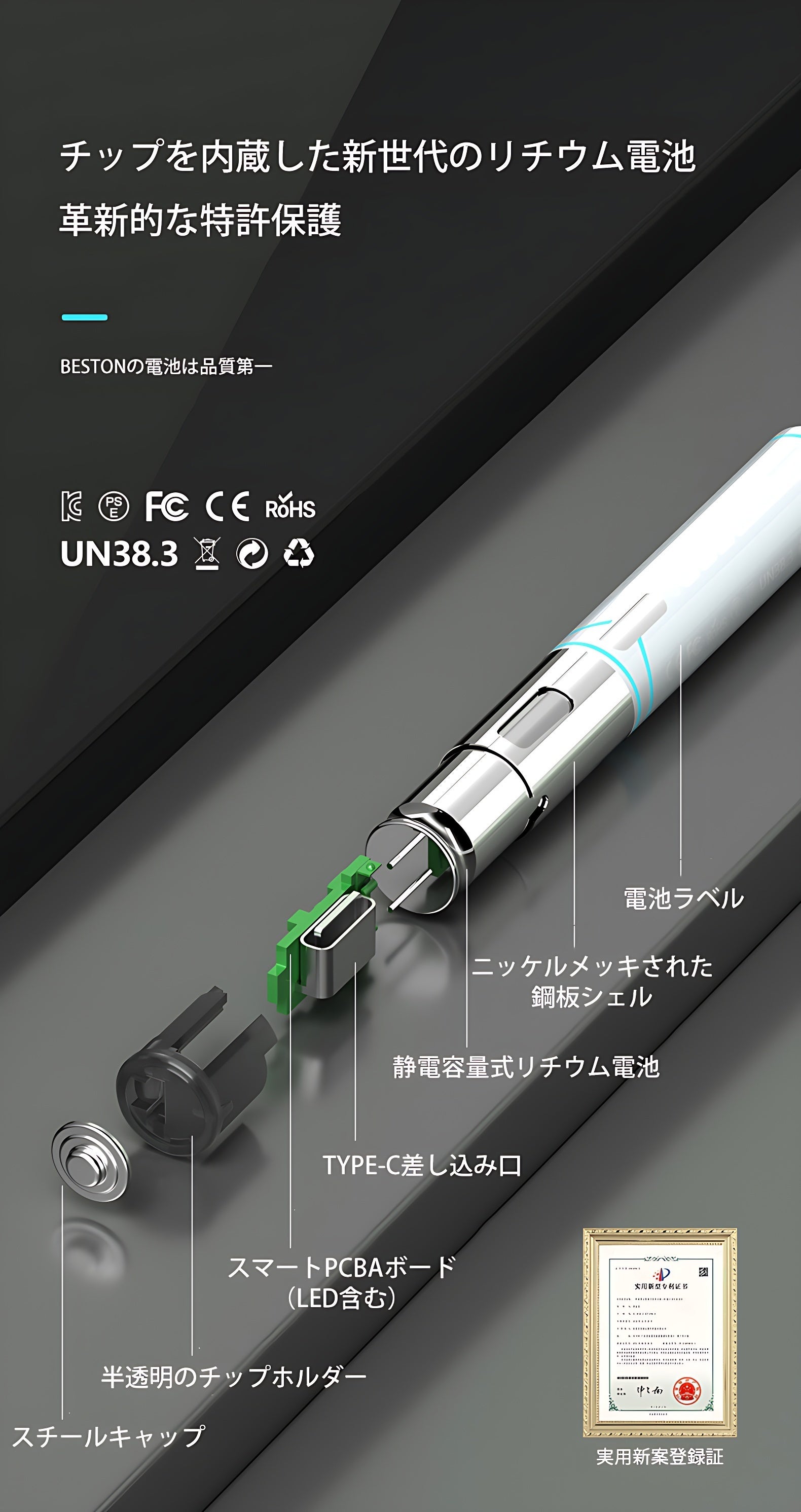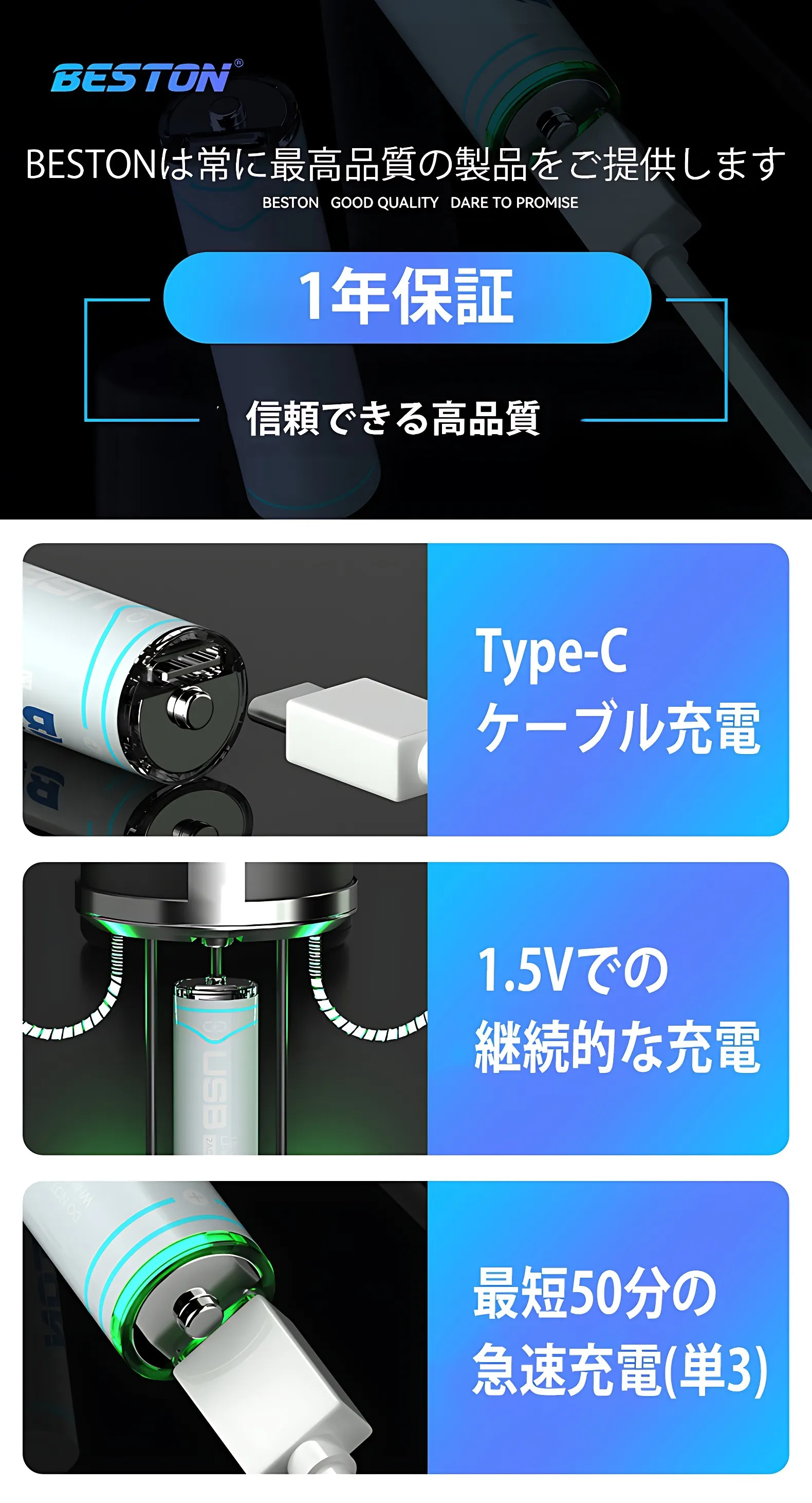 リチウムイオン電池「BESTON」の特徴: