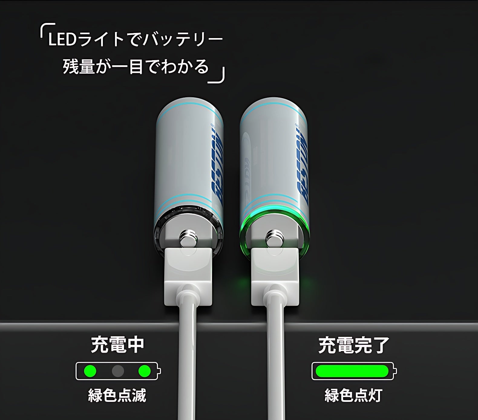ライトの点灯によって充電状況を判断でき、無駄な時間を省けます。