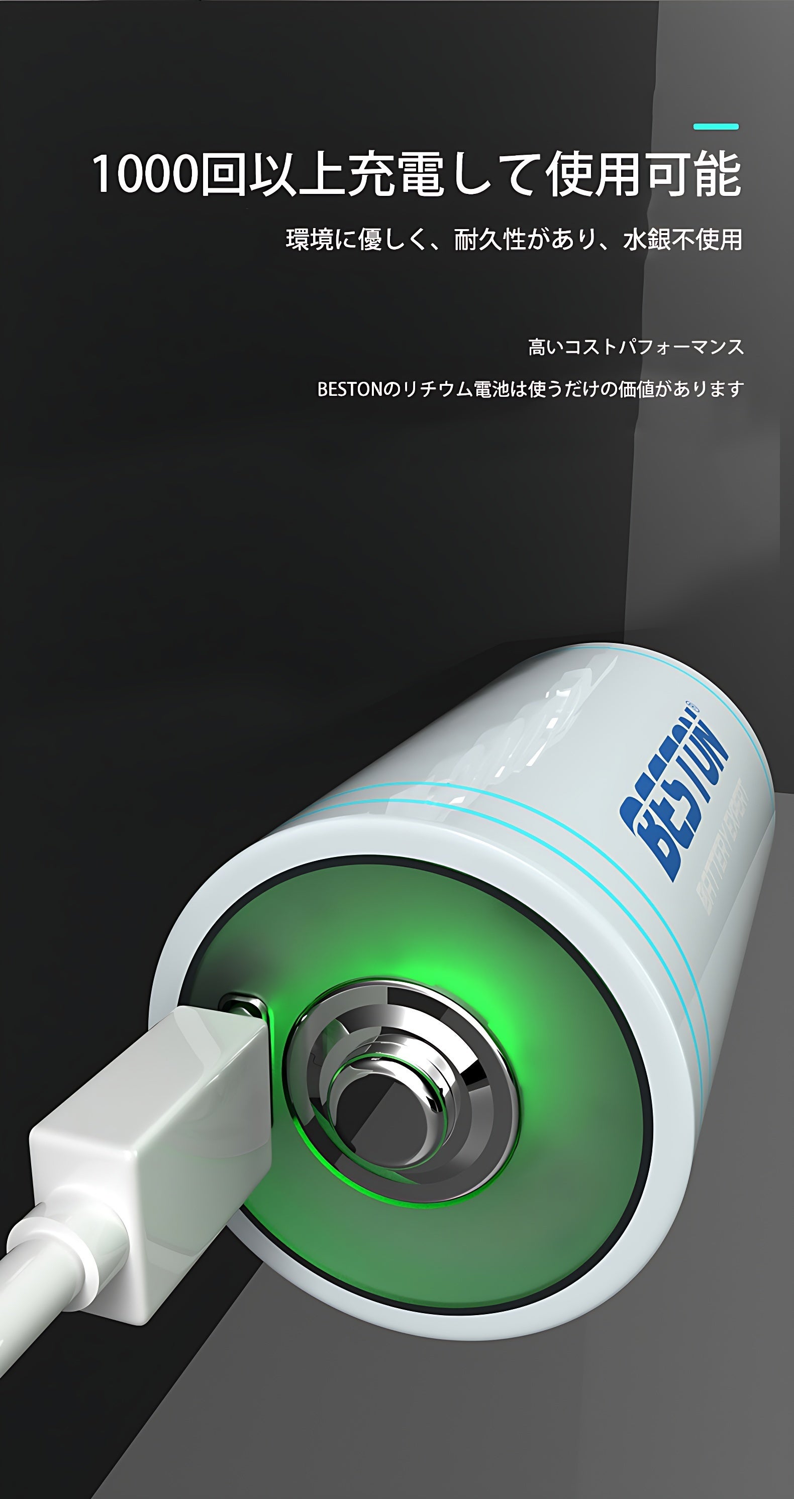 普通の乾電池は1回使い切ってしまえば、捨てるしかありませんでした。しかし、BESTONリチウムイオン電池は充電すれば1000回以上繰り返し使うことができます。
