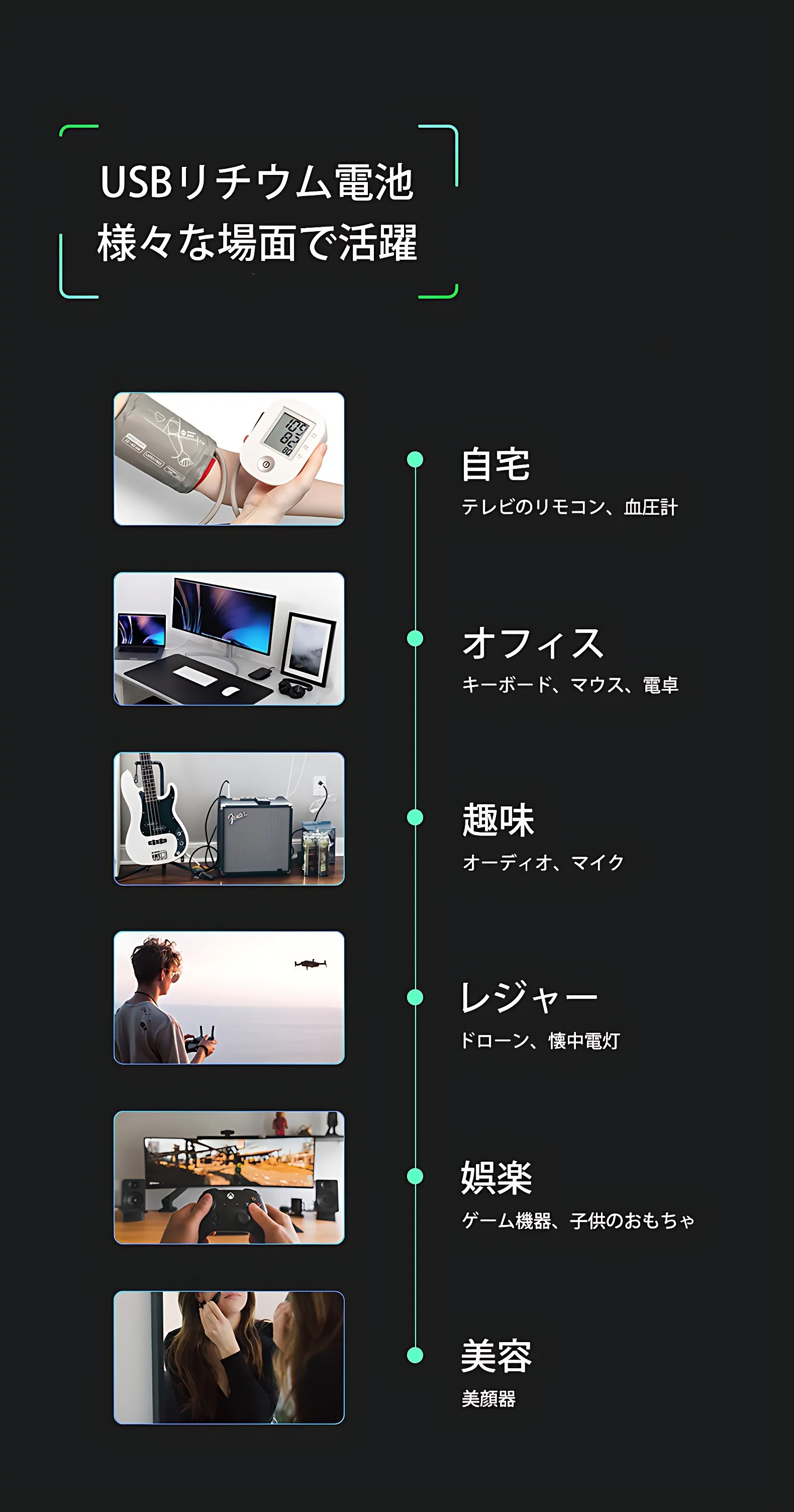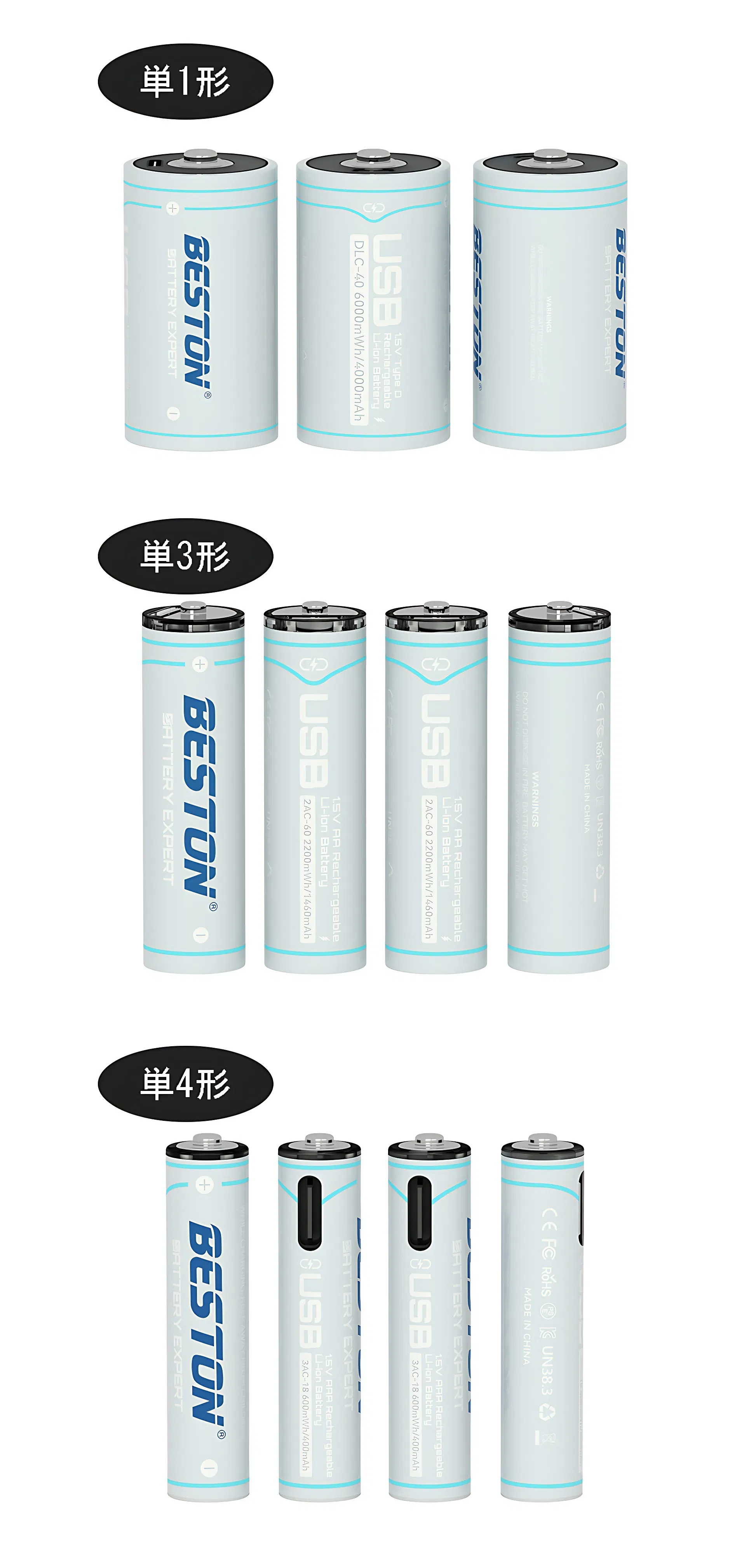 単1形、単3形、単4形のサイズがあり、用途によって適切な種類をお選びいただけます。