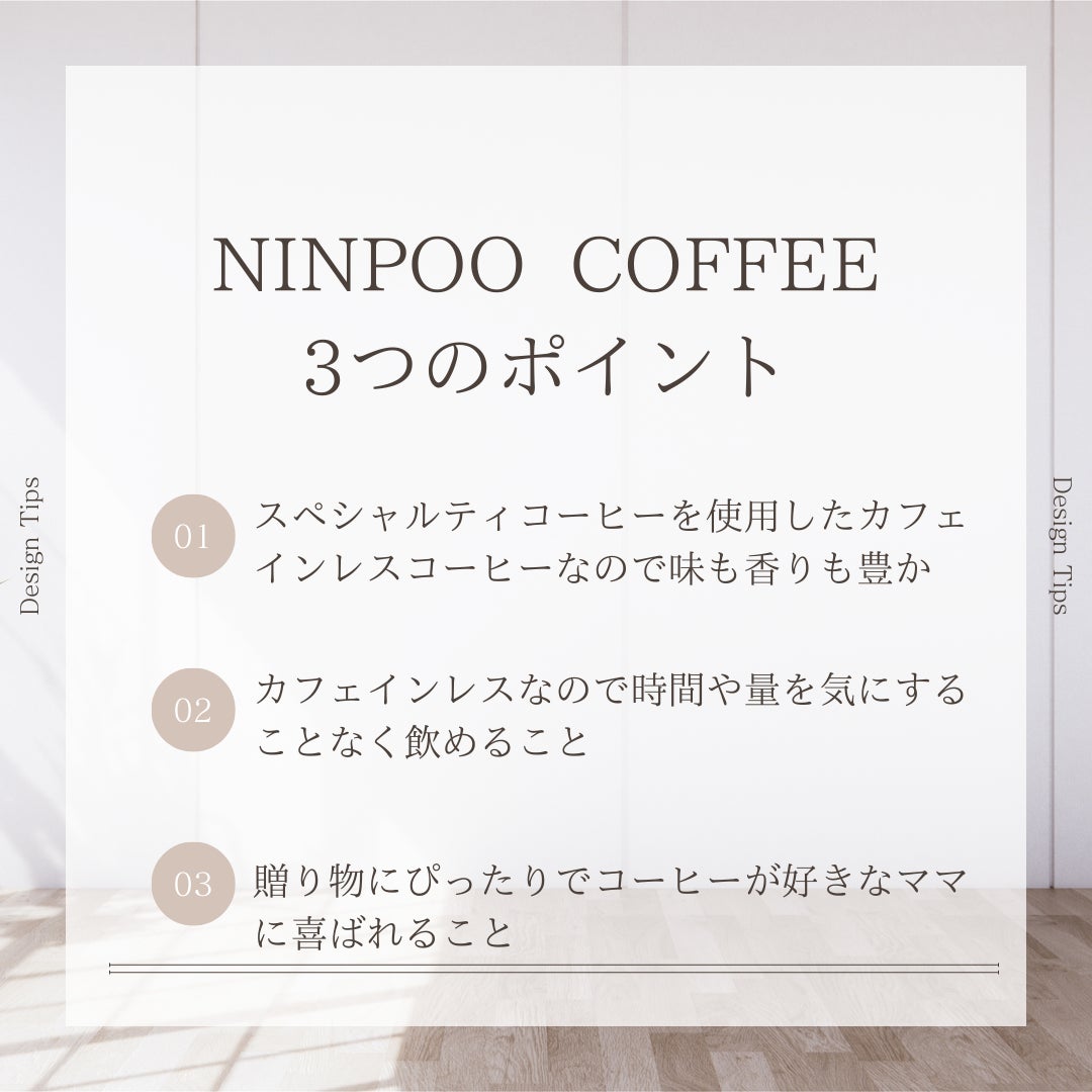 たくさん飲んでも心も体も落ち着いた状態を保つことができるので飲みたいときに時間を選ばず飲めちゃうコーヒーが「NINPOO COFFEE」です。カフェインは取りすぎると不眠や不安の原因になると云われています。