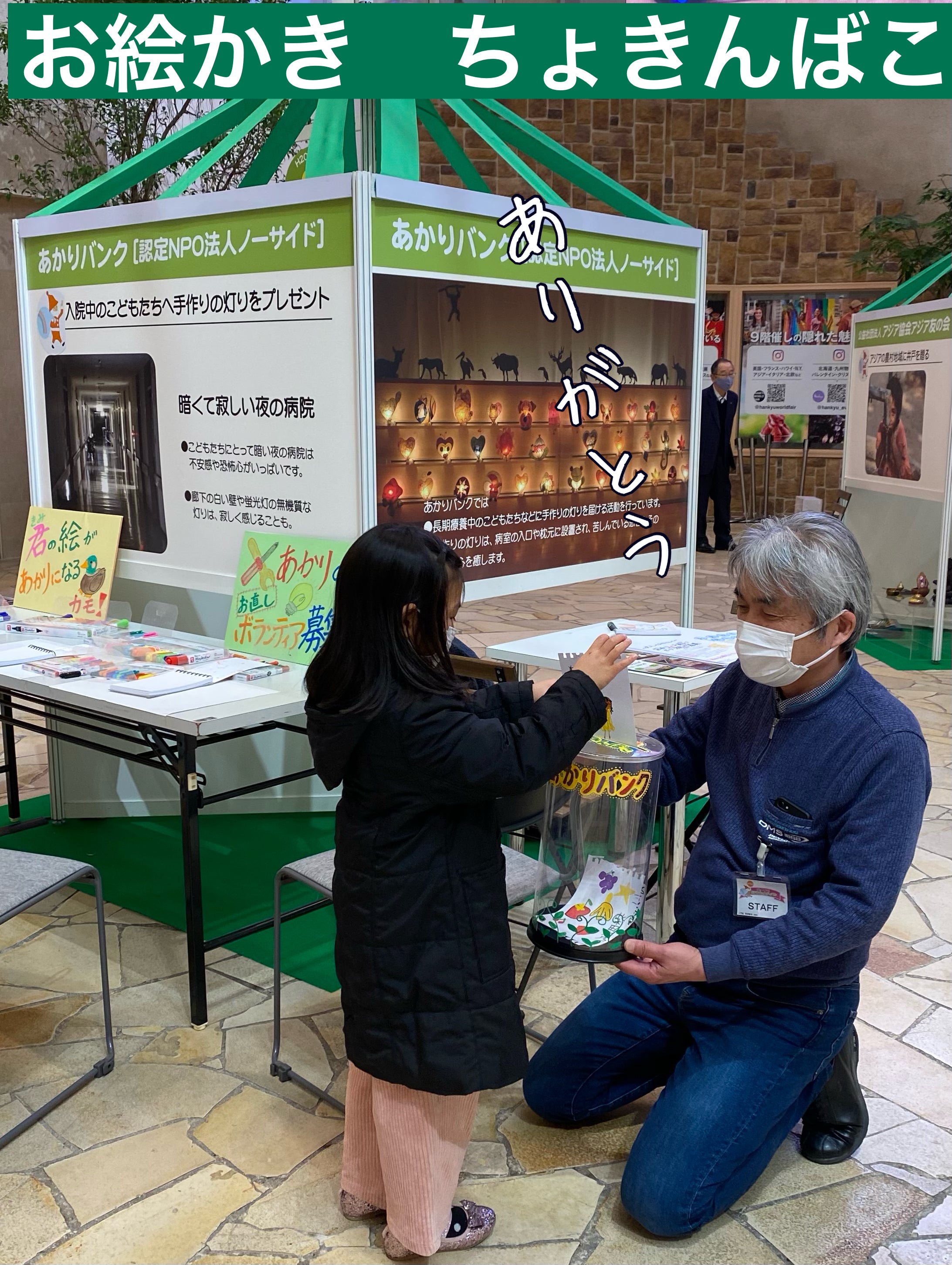 <商店街でワークショップを行い、作ったあかりを「こどもホスピス」に届けました>