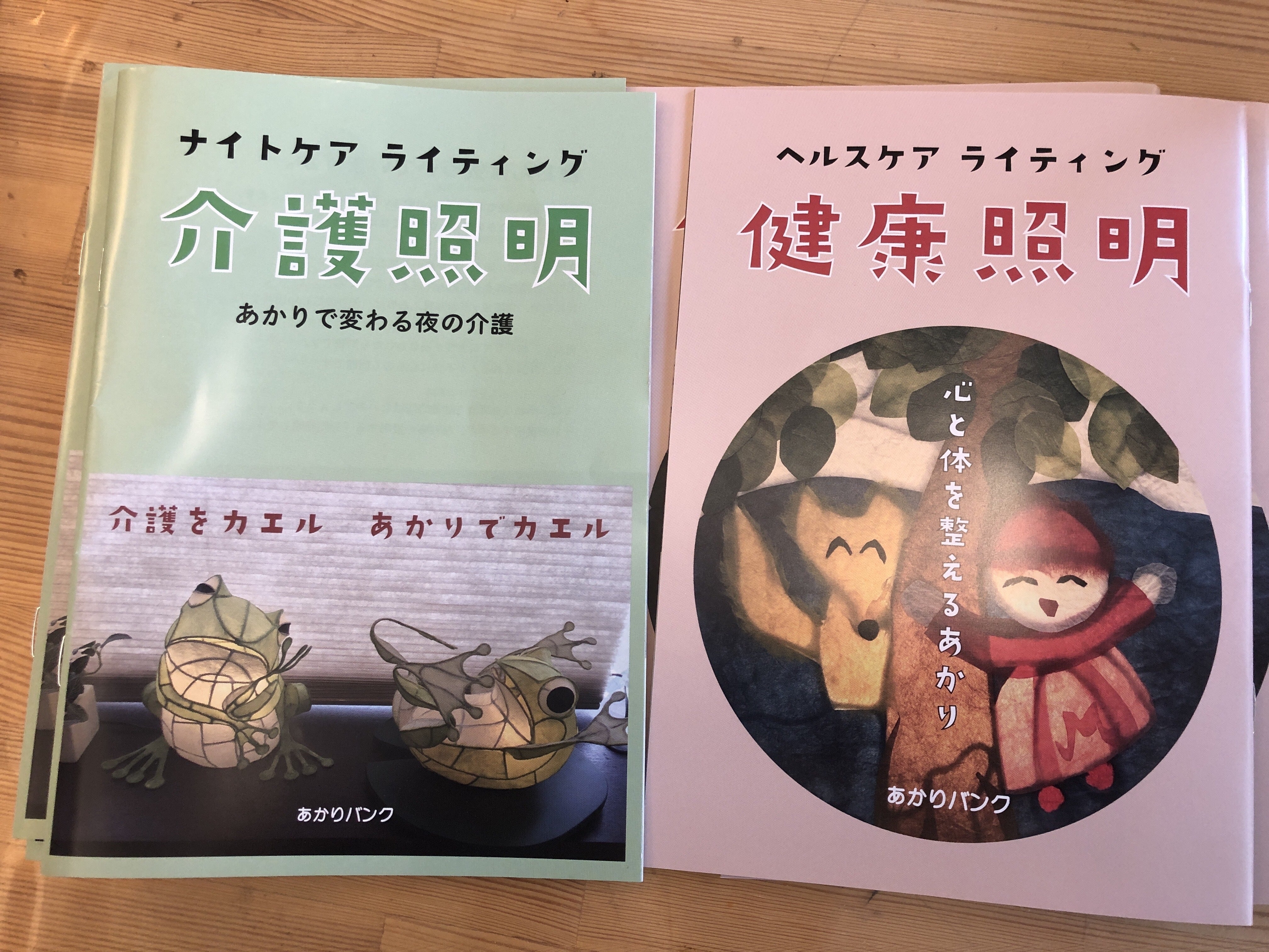 クラファン終了後から取り掛かっていた冊子「介護照明&健康照明」が刷り上がってきましたので、本日受領証明書と一緒に送る手配をしました。着きましたらご確認下さい。さて、最近あかりバンクの活動に興味を持って共同研究をしたいという大学が現れました。またこの秋には看護系や美術系大学で講演することも決まっています。この冊子はその時のテキストにもしたいと思っています。「介護照明」の方は、今回のプロジェクトで送る明かりをうまく使っていただくためのノウハウを詰め込みましたし、「健康照明」の方は、ストレスや自律神経、睡眠、体内時計といったものと照明の関係を解説しているのに加え、認知症予防についても触れています。明かりを灯すということは皆さんイメージしやすいと思いますが、「健康照明」では自分で作るということも大きなテーマにしています。この冊子は、多くの人や施設に届けたいので、もし興味を持たれる方(施設、団体、企業等)がおられましたら、照明塾までお知らせいただきたいと思います。現時点での進行状態ですが、子供達の絵をあかりにする「あかり作りボランティア」を「ハチドリのゆ」で毎週土曜日に開催しています。(子供の描いた絵や、あかりづくりボランティア募集中です)また、間接照明ボードも工場から部品が届いてきましたので、これから組み立てに入ります。これができたら、今度は全国へ送る段階ですが、まだ目標の100家族までは余裕がありますので、お届け先の情報もありましたら是非お知らせください。※返礼品で「ワークショップ」を申し込まれた方は、もう少しお待ちください。こちらからまたご連絡いたします。 あかりバンク/照明塾 橋田裕司