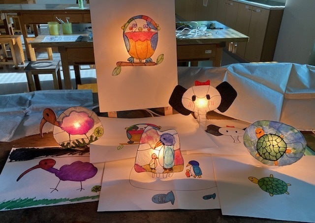 皆様こんにちは。皆様にご支援いただき沢山のご家庭にあかりを届けられること,たいへん嬉しく思っています。あかりバンクでは,現在,子ども達に絵を描いてもらい,あかりづくりボランティアさんの協力のもと,あかりづくりを始めております。作業療法士を目指す学生さんの協力で,とっても可愛い動物のあかりが出来ました。9月2日,9月16日にも,ハチドリのゆ,にてあかり作りボランティアを予定しています。また,お絵描きワークショップ,あかりづくりの経過をご報告させていただきます。どんなあかりが出来るのか楽しみです。