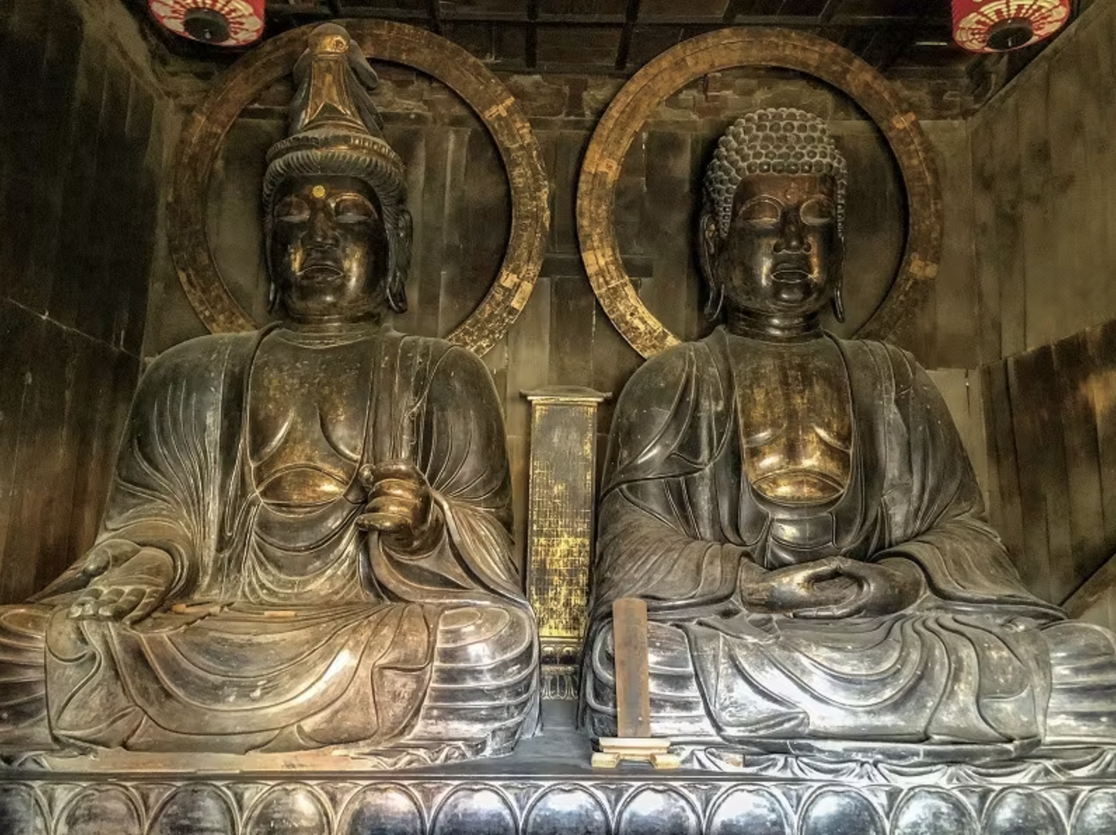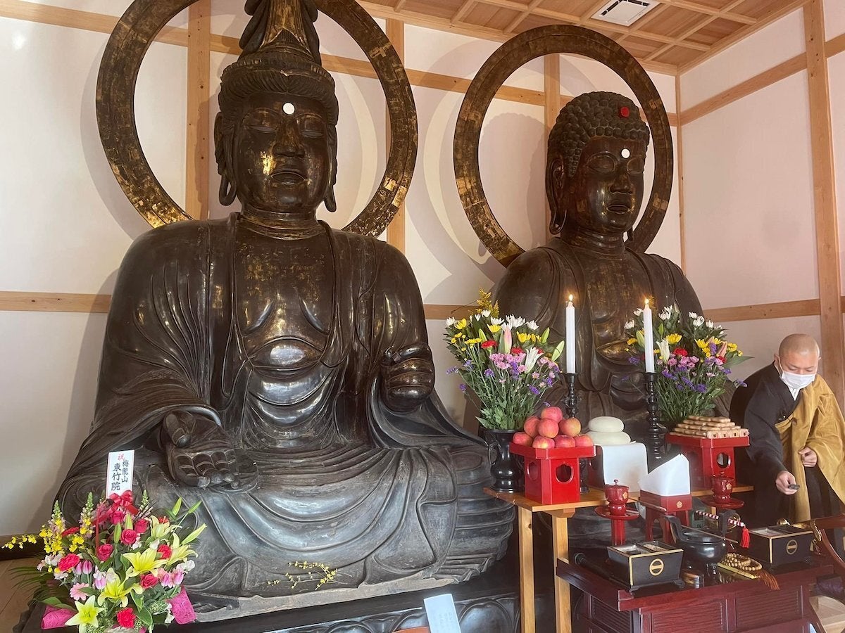 平戸の大仏:向かって右側が「薬師如来坐像」、左側が「観世音菩薩坐像」