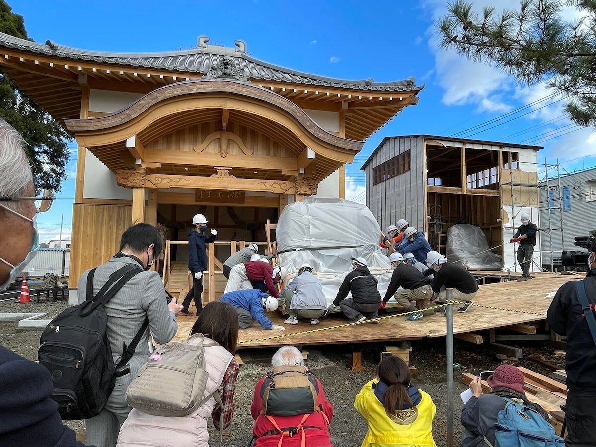 新本堂へ移動の様子 (吉備文化財修復所提供)