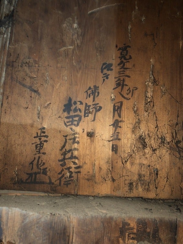 令和3年10月には、「寛文三年(1663)仏師松田庄兵衛」の墨書が薬師如来坐像内から発見された。