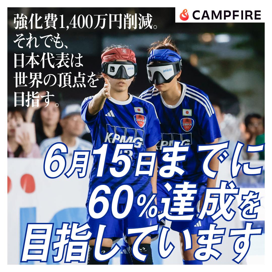 ブラインドサッカー日本代表のクラファン挑戦も、終了日である6月30日が迫ってまいりました。