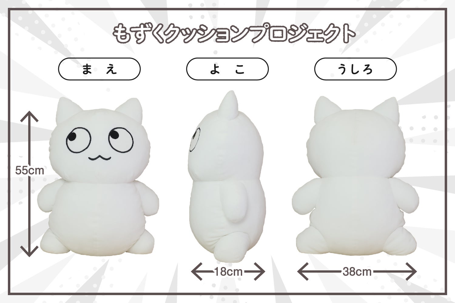 今回のぬいぐるみは大きさも可愛さもパワーアップした、素敵な仕上がりになっています。一緒にお昼寝するもよし、ソファに鎮座させるもよし、頑張るみなさんの日常に寄り添ってくれると思います。