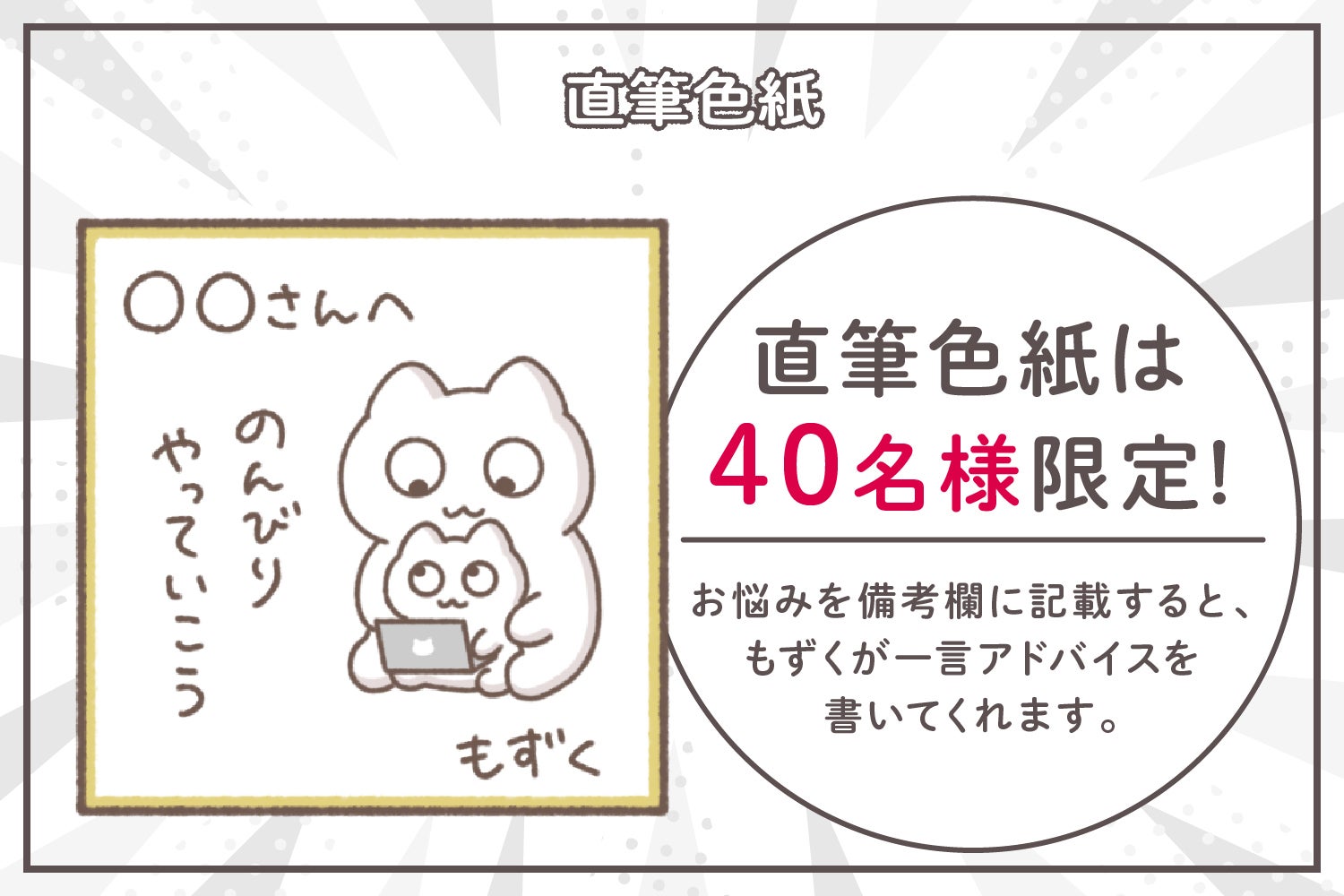 ●もずくさんから画像の色紙のようにアンサーの一言とイラストを描いていただけます。