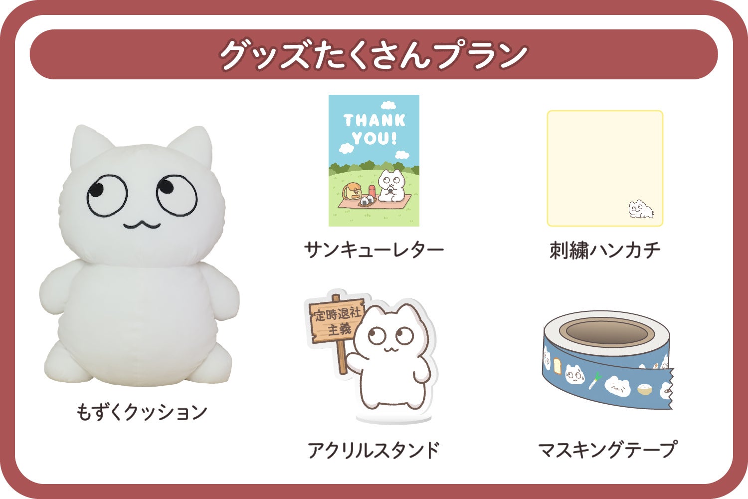 クッション2個とグッズがセットのプラン!