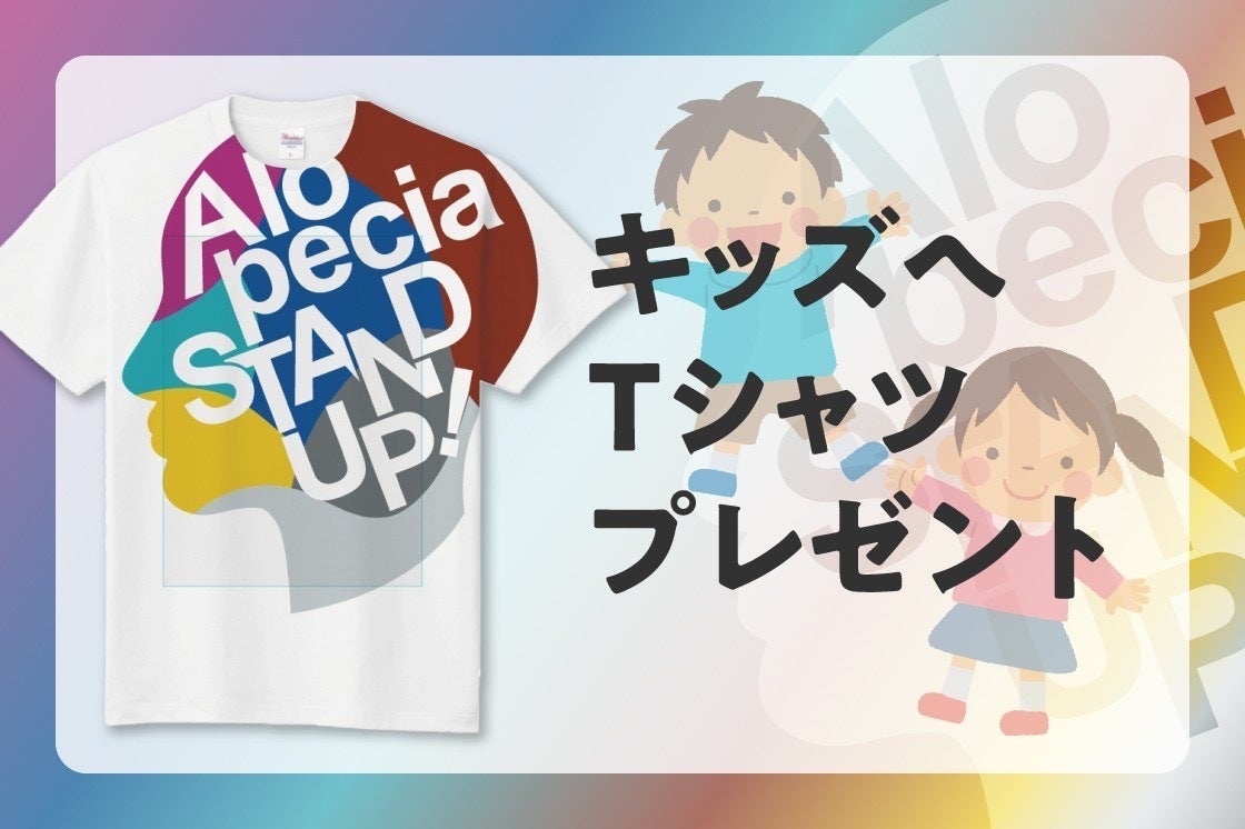 Alopecia STAND UP!2023オリジナルTシャツは、 心躍るパワフルなロゴをプリントしたTシャツです。 会場に来てくれた子ども達にぜひこのTシャツを着て、 ロゴデザインのようにパワフルに過ごしてほしい! 子ども達へのプレゼントのためにご支援いただけると嬉しいです。 よろしくお願いします!」 ※サイズはS、SSサイズとなります。