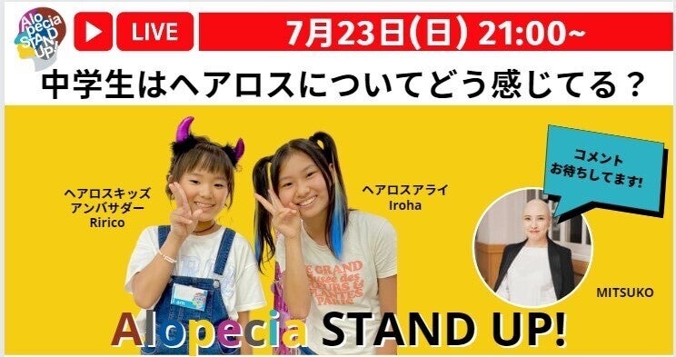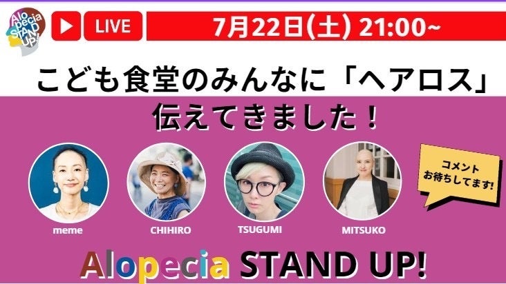本日、7月22日21時より先日、渋谷区SDGs協会主催の「渋谷センター街こども食堂」にてASPJのワークショップ「髪がないとダメなの?」を行いました。開催の様子をライブ配信にて、ご報告します☆ライブ配信はこちら↓↓【ライブ配信】こども食堂の子どもたちにヘアロスを伝えてきました! - YouTubeTwitterからご覧になる方は、フォローをお願いします!@AlopeciaStandUp 明日、23日21時からは、「中学生はヘアロスについてどう感じてる?」をライブ配信します!ライブ配信はこちら↓↓【ライブ配信】ヘアロスについて中学生はどう感じてる?? - YouTubeTwitterからご覧になる方は、フォローをお願いします!@AlopeciaStandUp