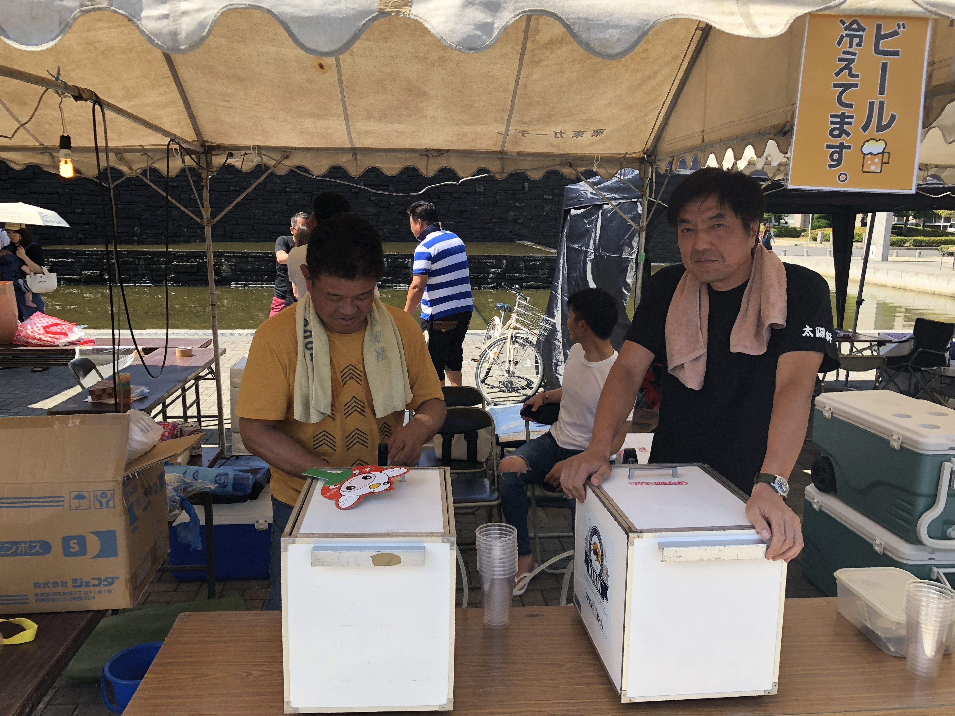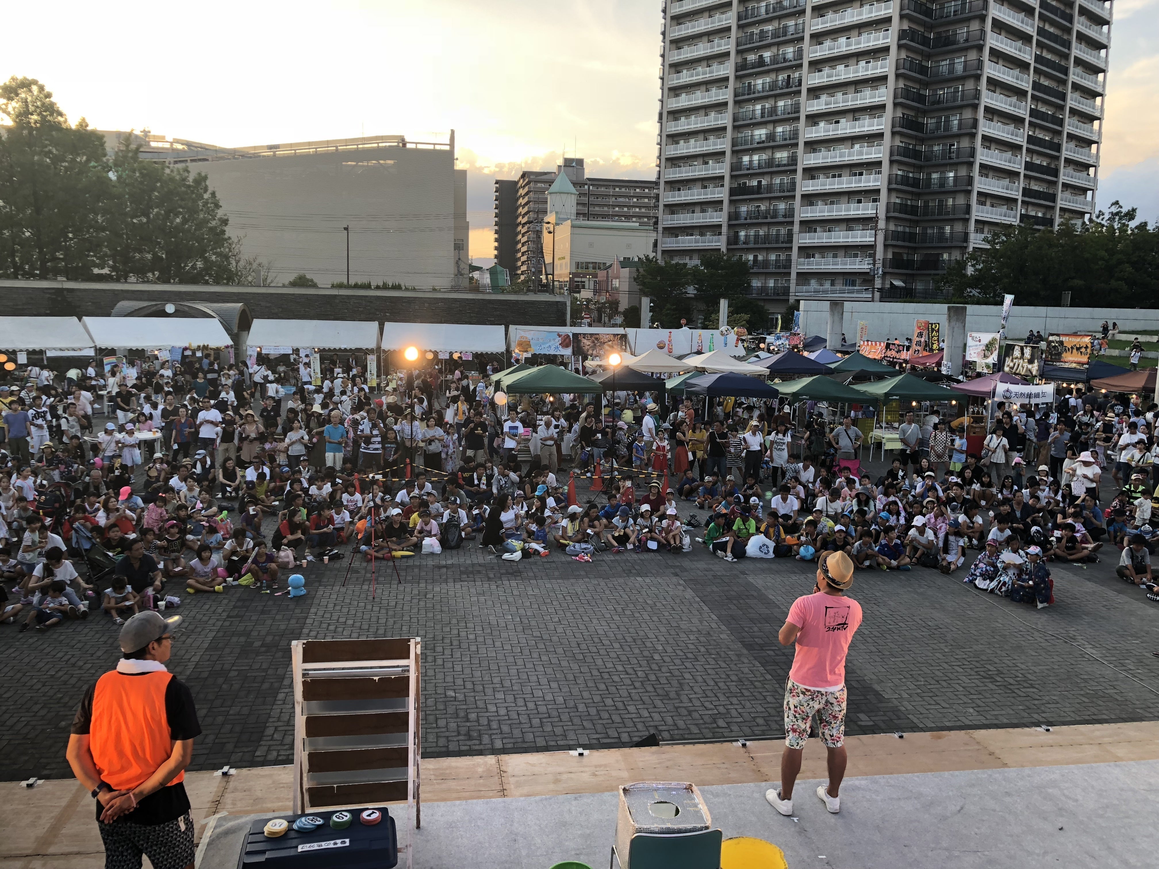 近隣スーパーのご厚意で敷地の一画をお借りし、それぞれ持ち寄ったビールケースやべニア板でステージを作り、近隣の飲食店一軒一軒お願いをして出店をお願いしたりと相当苦労して準備をすすめていた姿を見ていました。