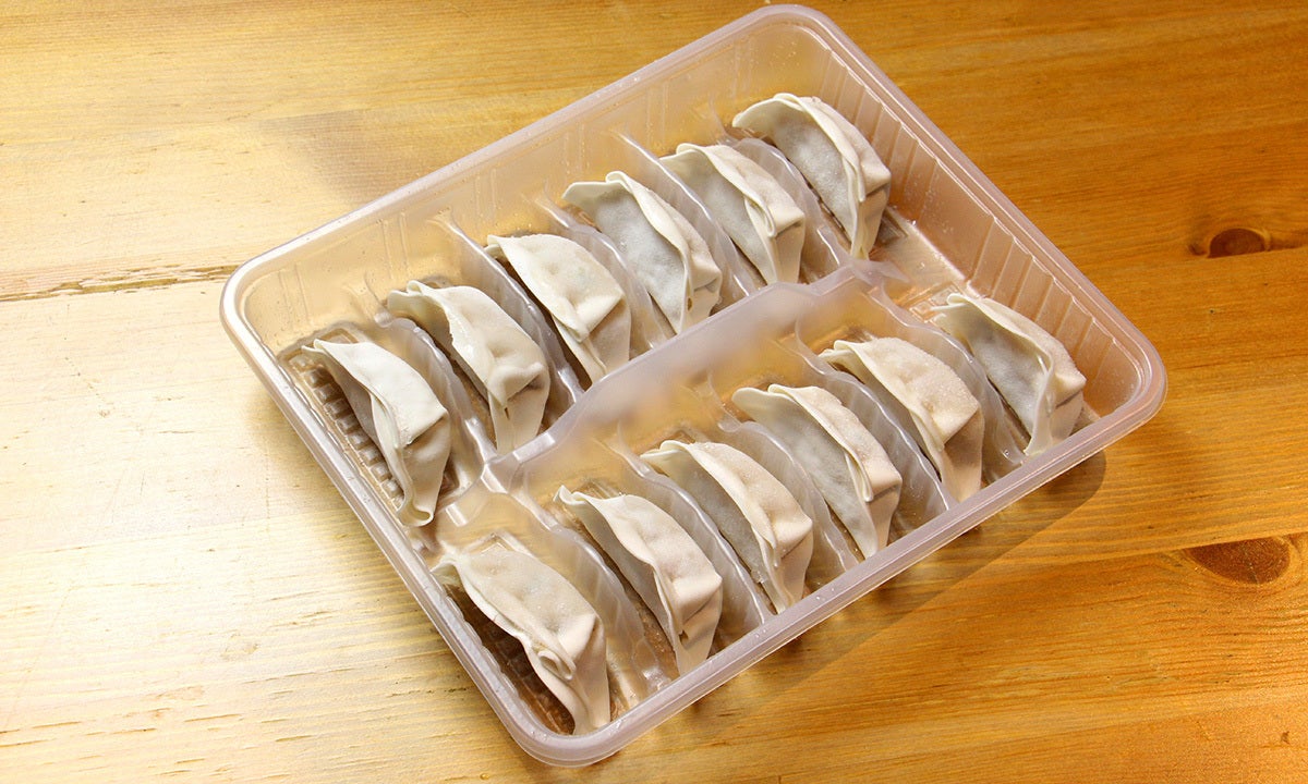 1:熱したフライパンに薄く油をひき、解凍せずにそのまま餃子を並べ、1分間加熱します