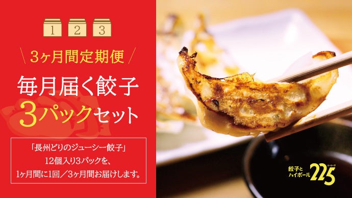 長州どりのジューシー餃子 12個入り×3パックを1ヶ月に1回/3か月間お届けします。