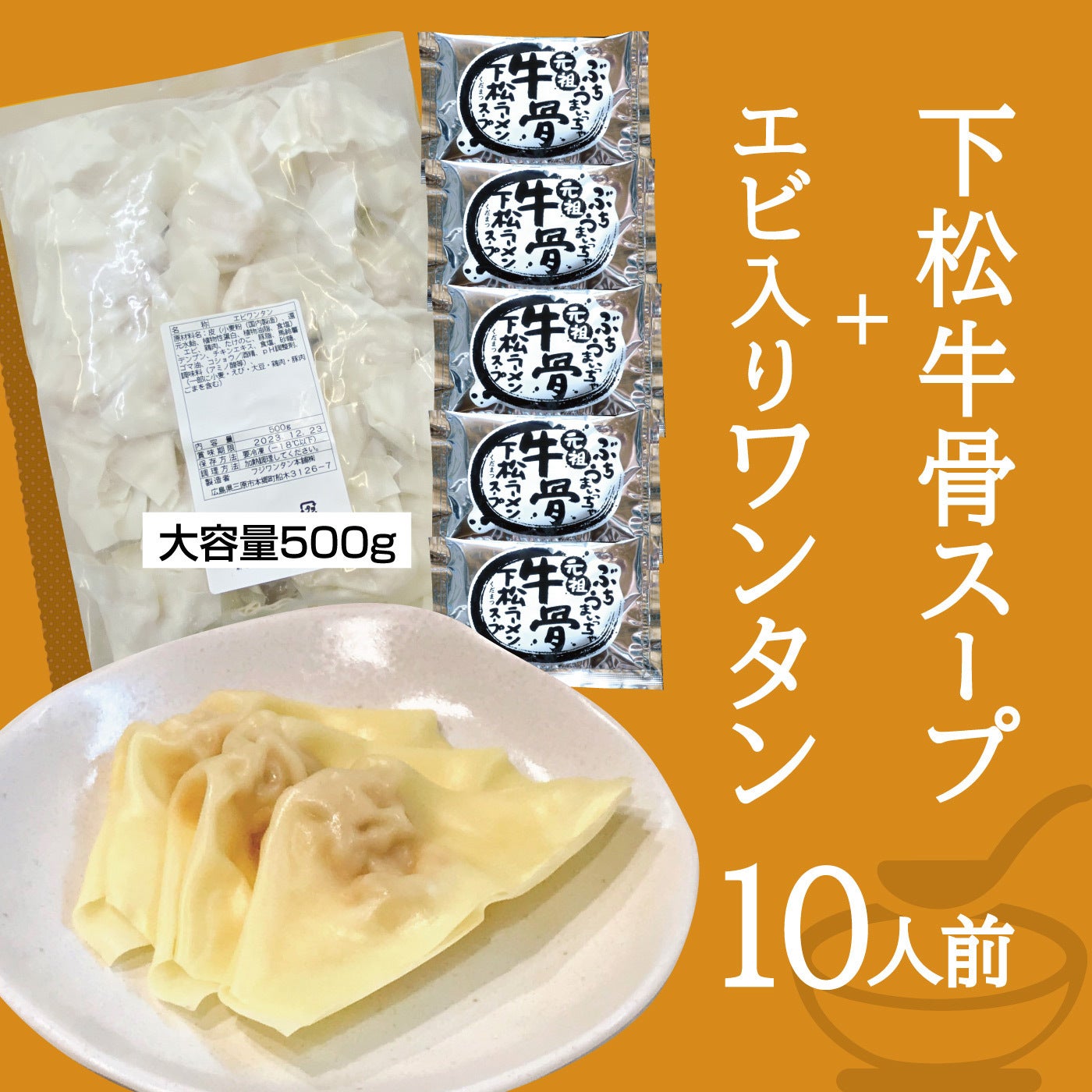 ・エビワンタン 1パック(500g)、下松牛骨スープ 5袋