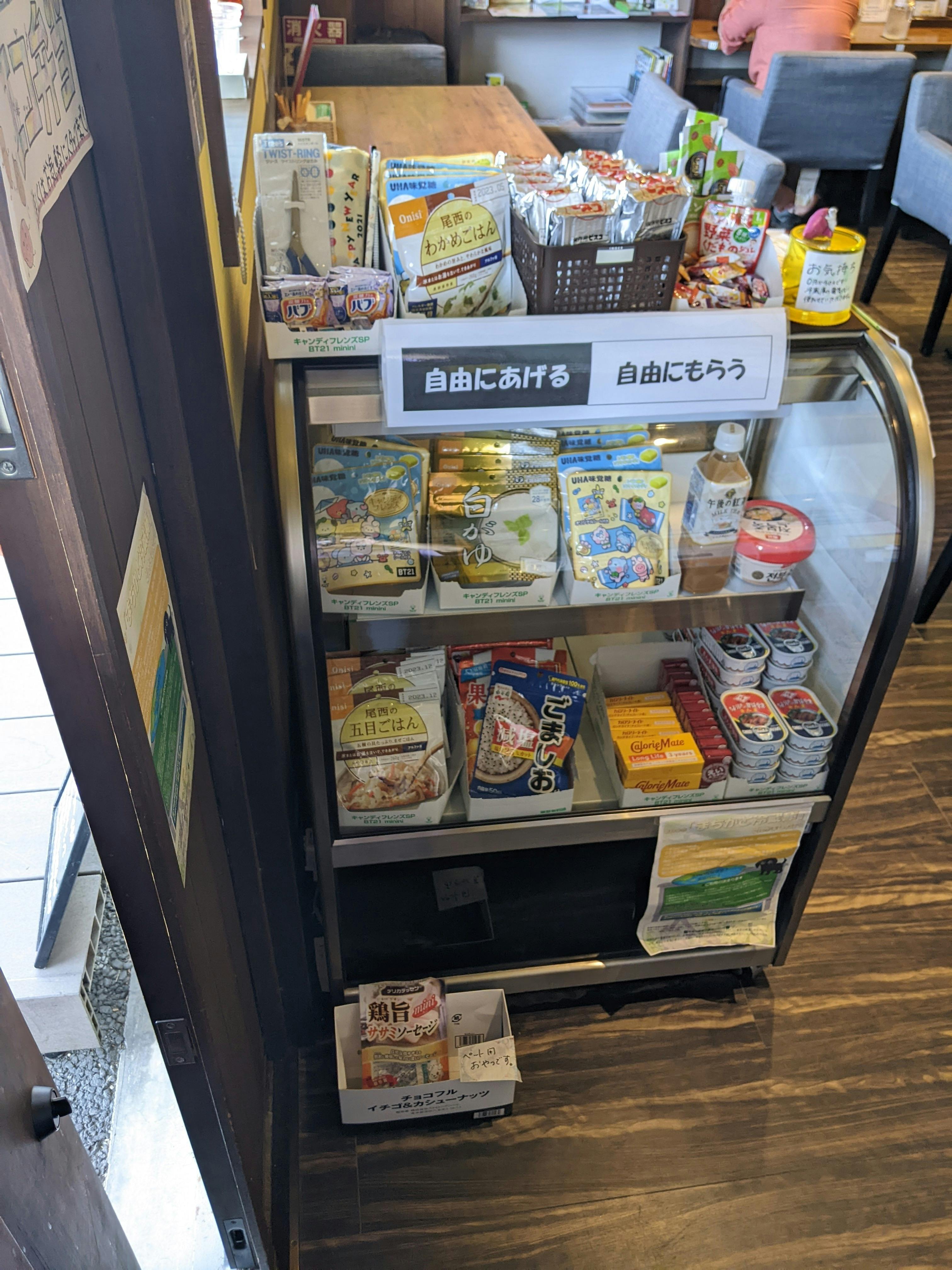 クラウドファンディング本文では触れていませんが、当店入口すぐの場所にあるこちらのショーケースのものは、自由に持ち帰る事が出来ます!街かど冷蔵庫です。