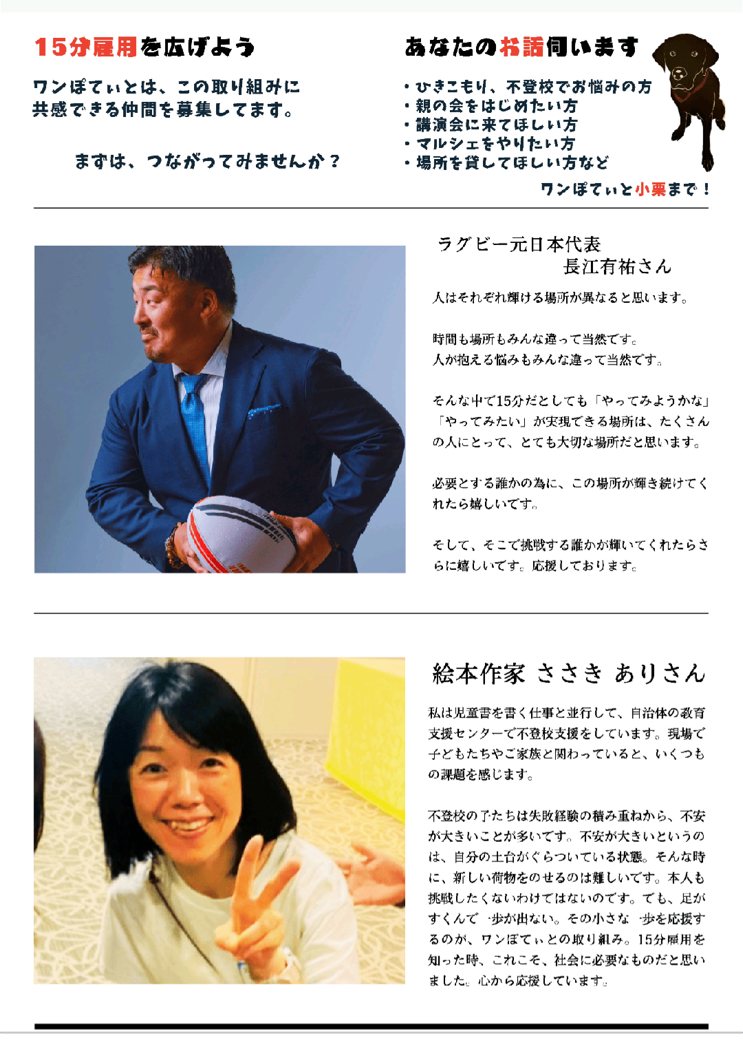 ワンぽてぃとは、補助金等も貰わず運営しており、そのことが、若者にとって一歩踏みやすい場所になっています。