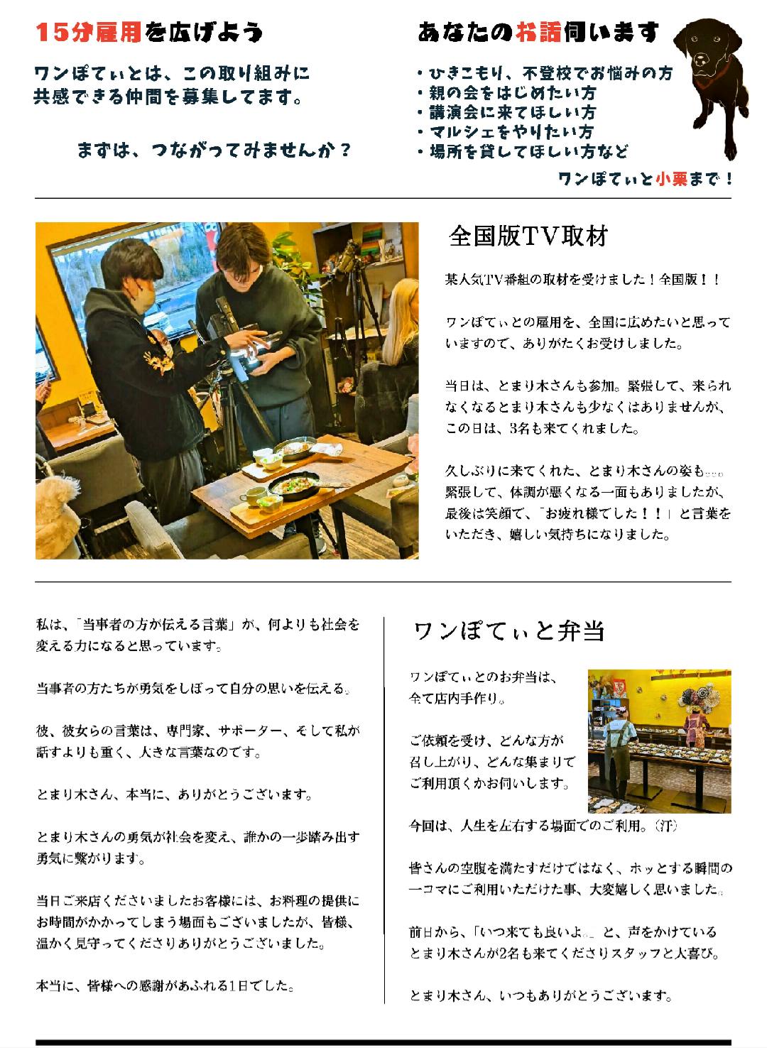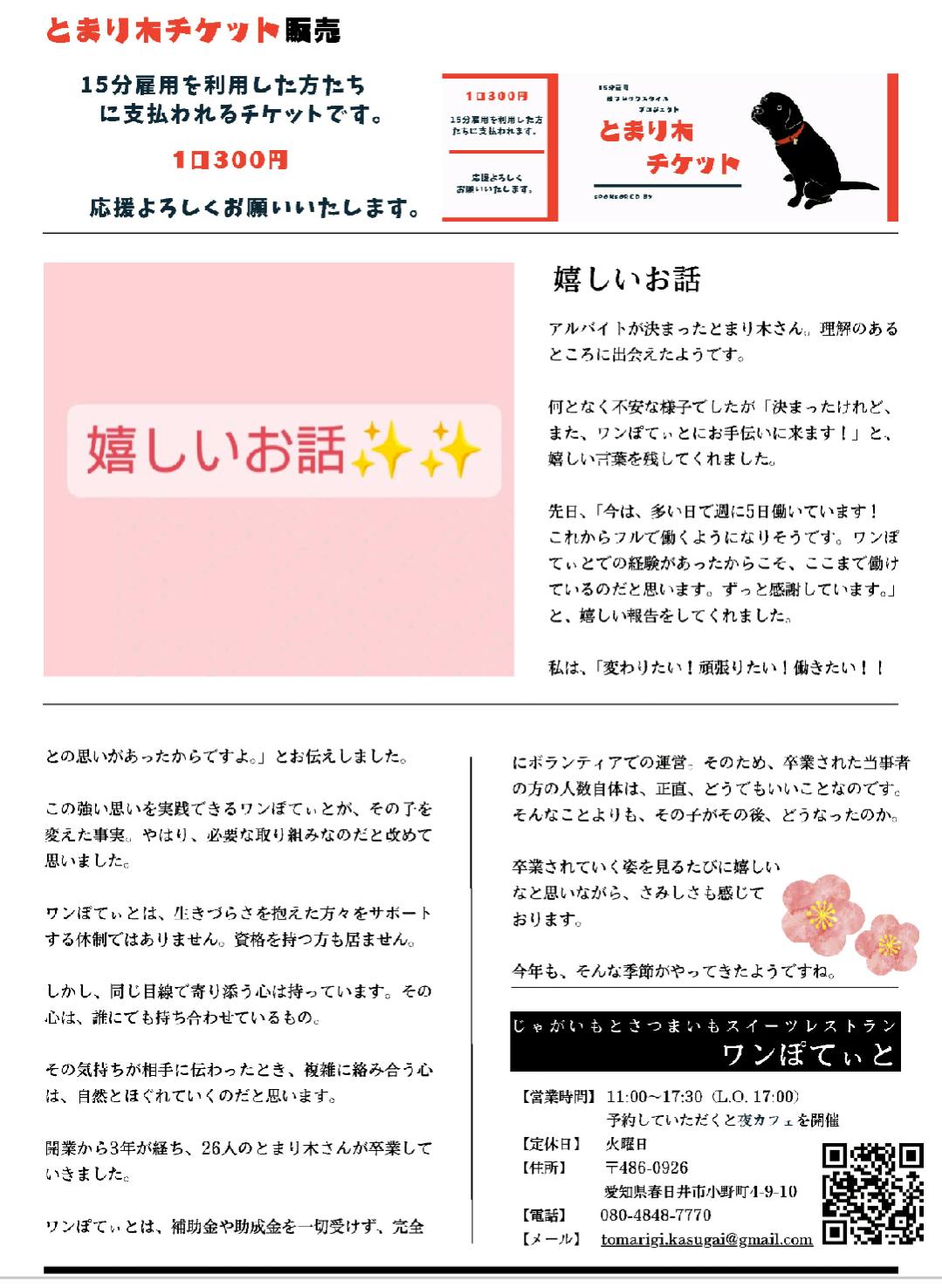 そんなエピソードも盛り込んだとまり木新聞をお送りさせていただきます。