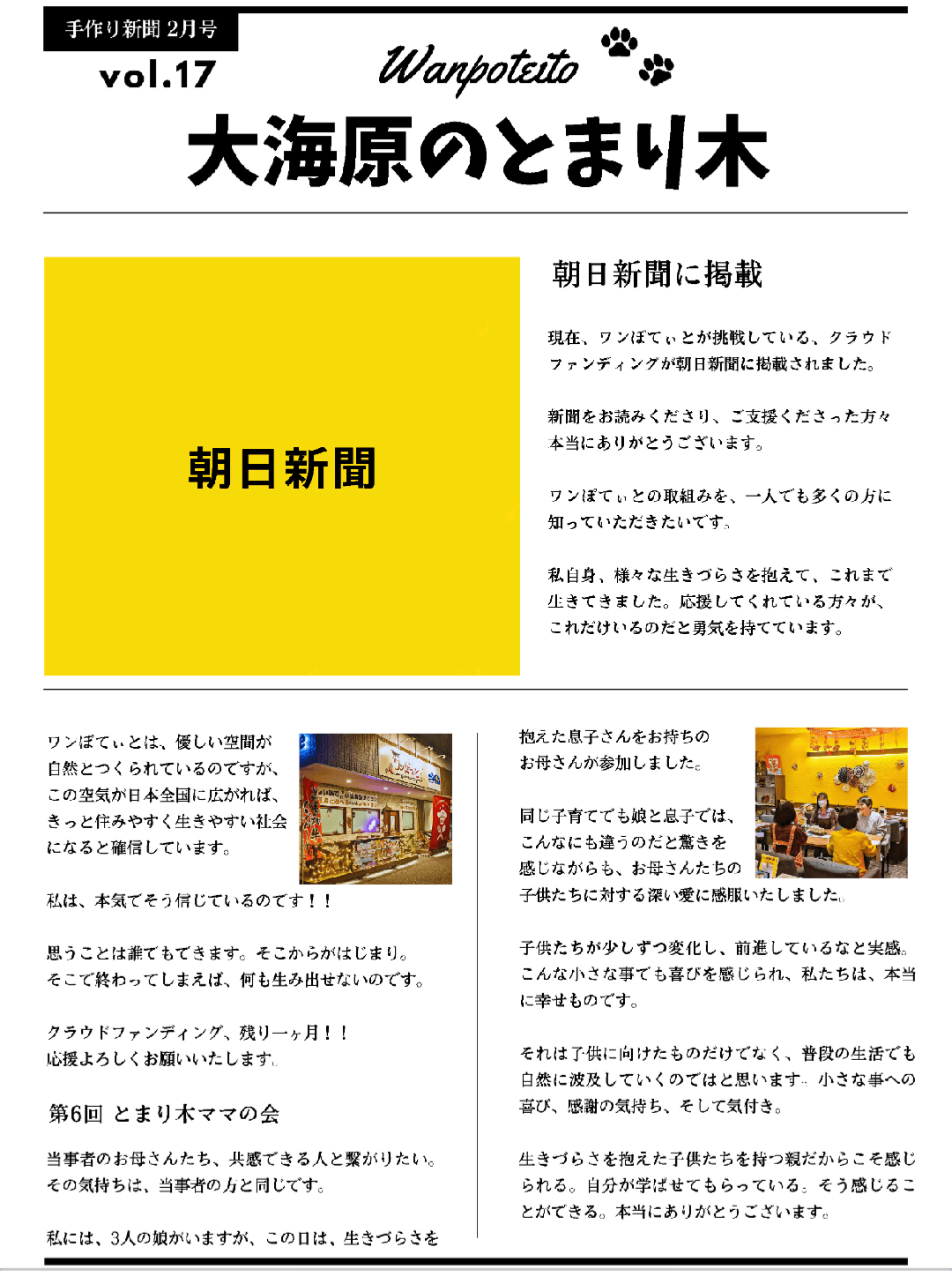 今月はクラウドファンディングに応援メッセージを下さった方の新聞も作成しました、お読みいただけますと幸いです。