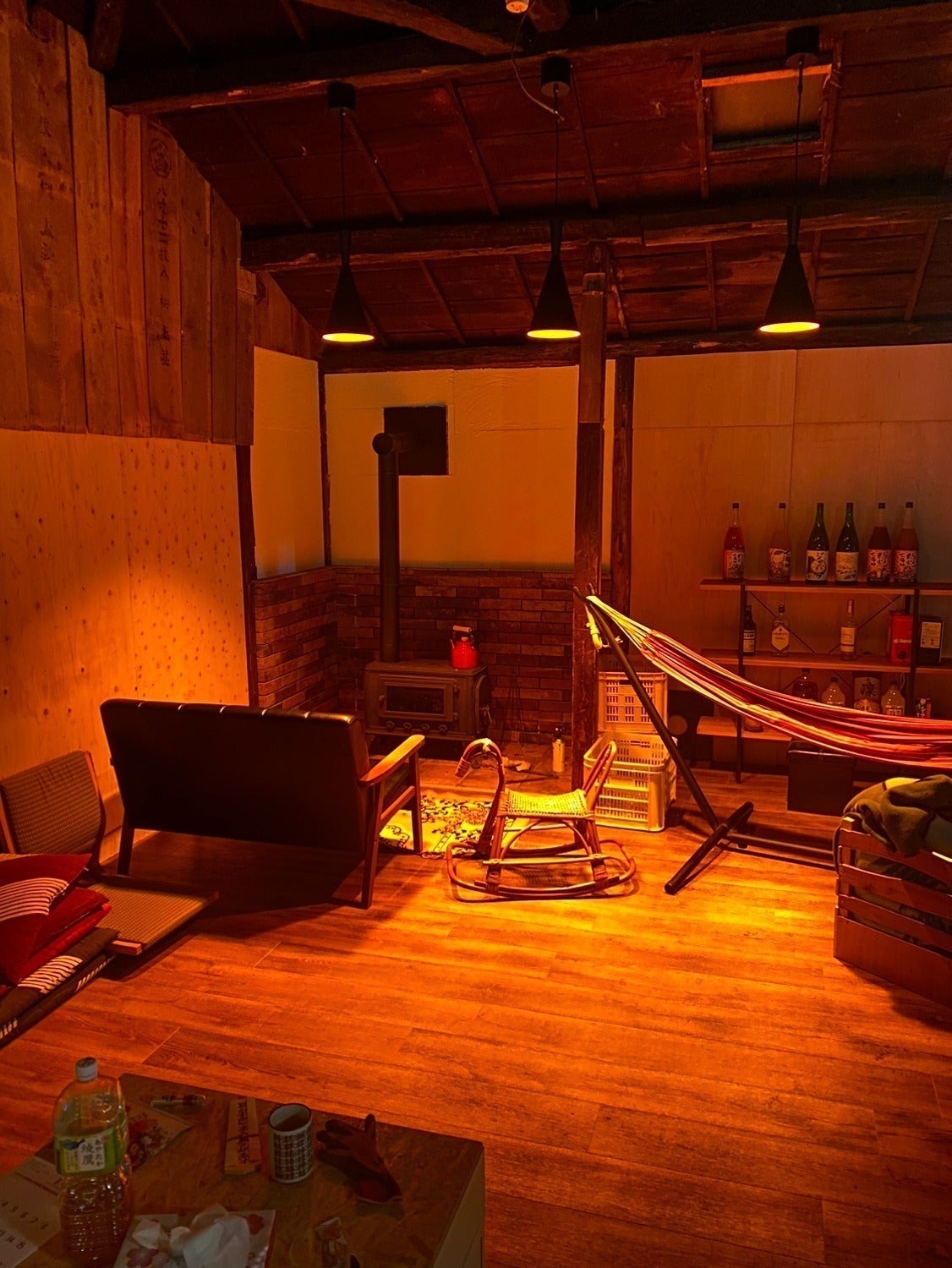 薪ストーブもつけて落ち着いた空間を作りましたが冬はとにかく寒い!笑