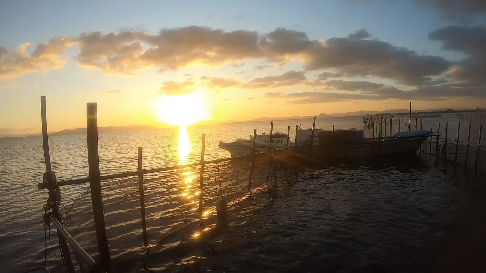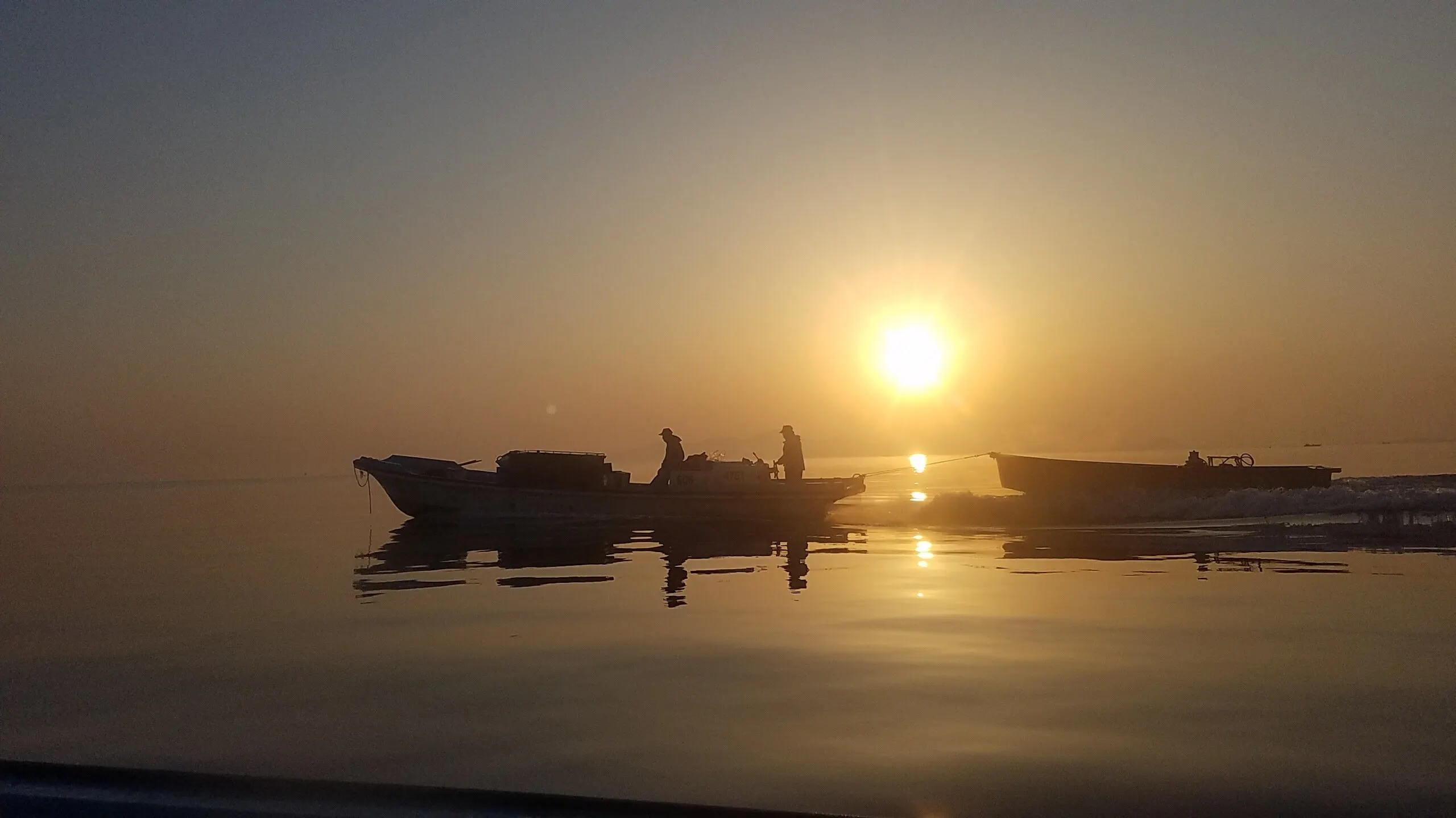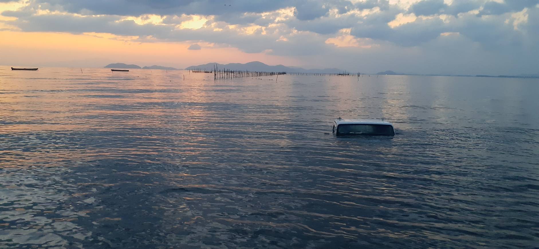 美しい朝日の写真…ではなく、トラックが水没してしまいました。怪我などはなかったのは幸いです…しかし、大きなトラックは魞(エリ)の網のメンテナンスの必需品。