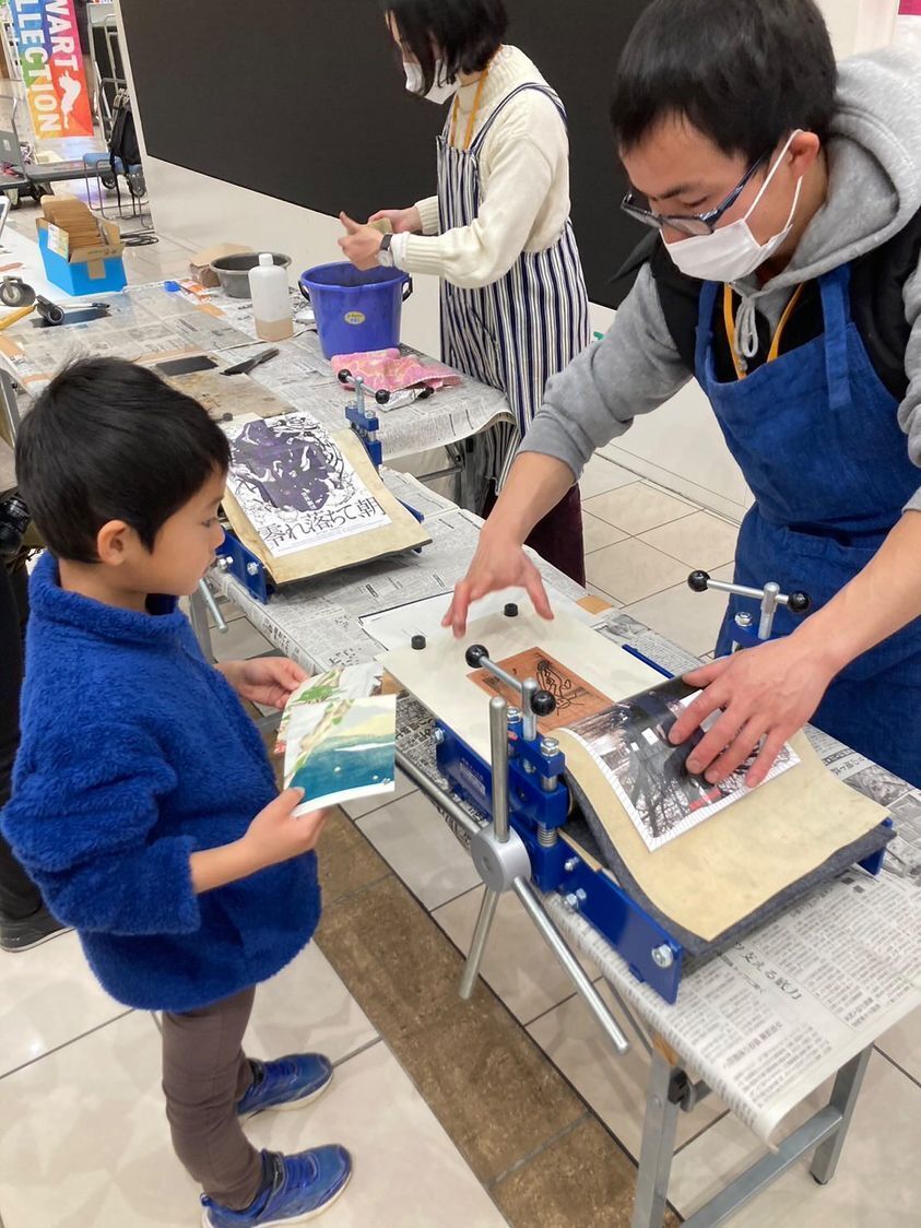アーティストの松元悠さんとコラボして「湖魚の版画つくり体験」を実施。