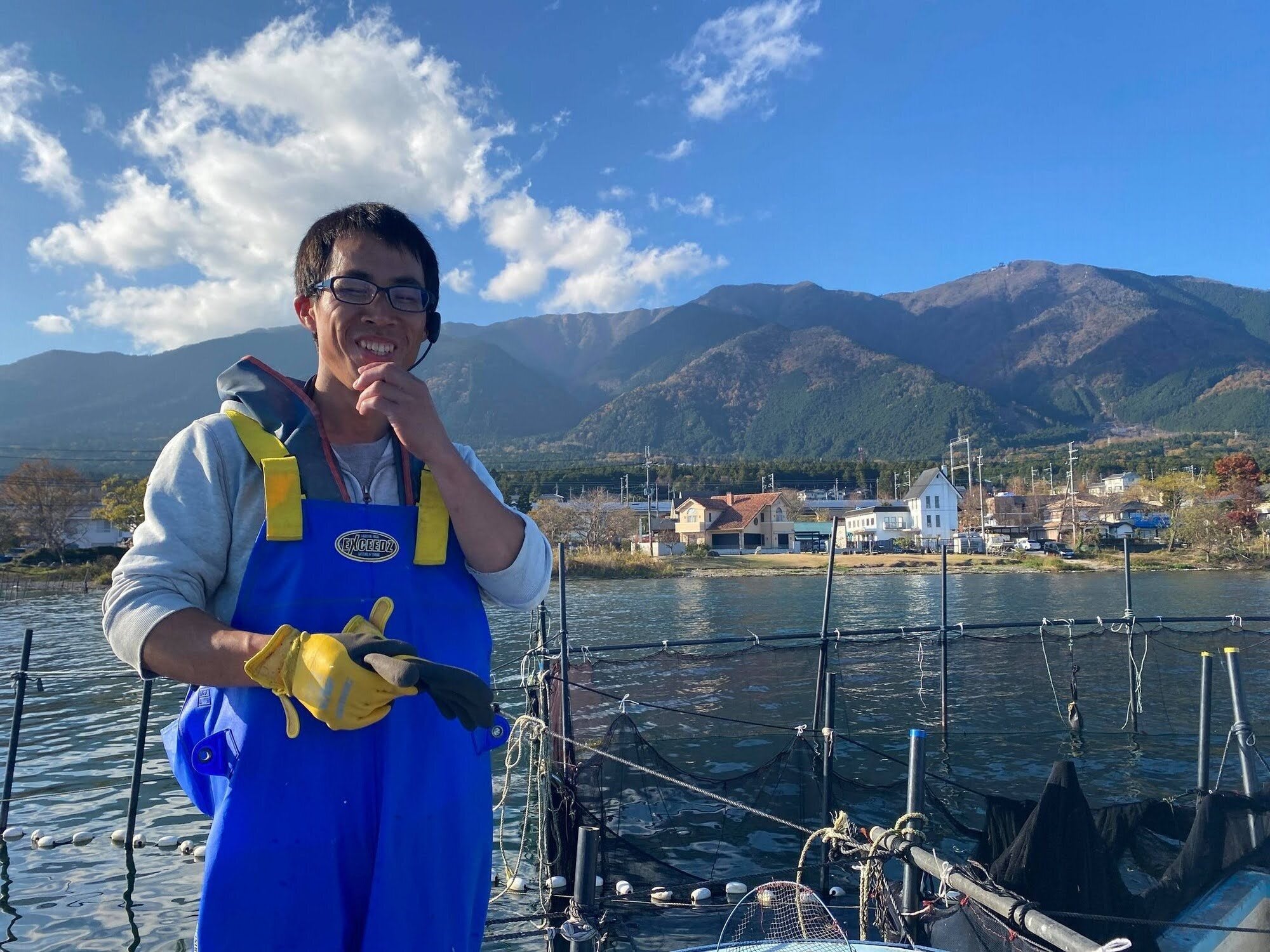 その方が私に『琵琶湖で頑張っている新米漁師がいるから村長一緒に応援してほしい!』そんな一言から出会った駒井くん。