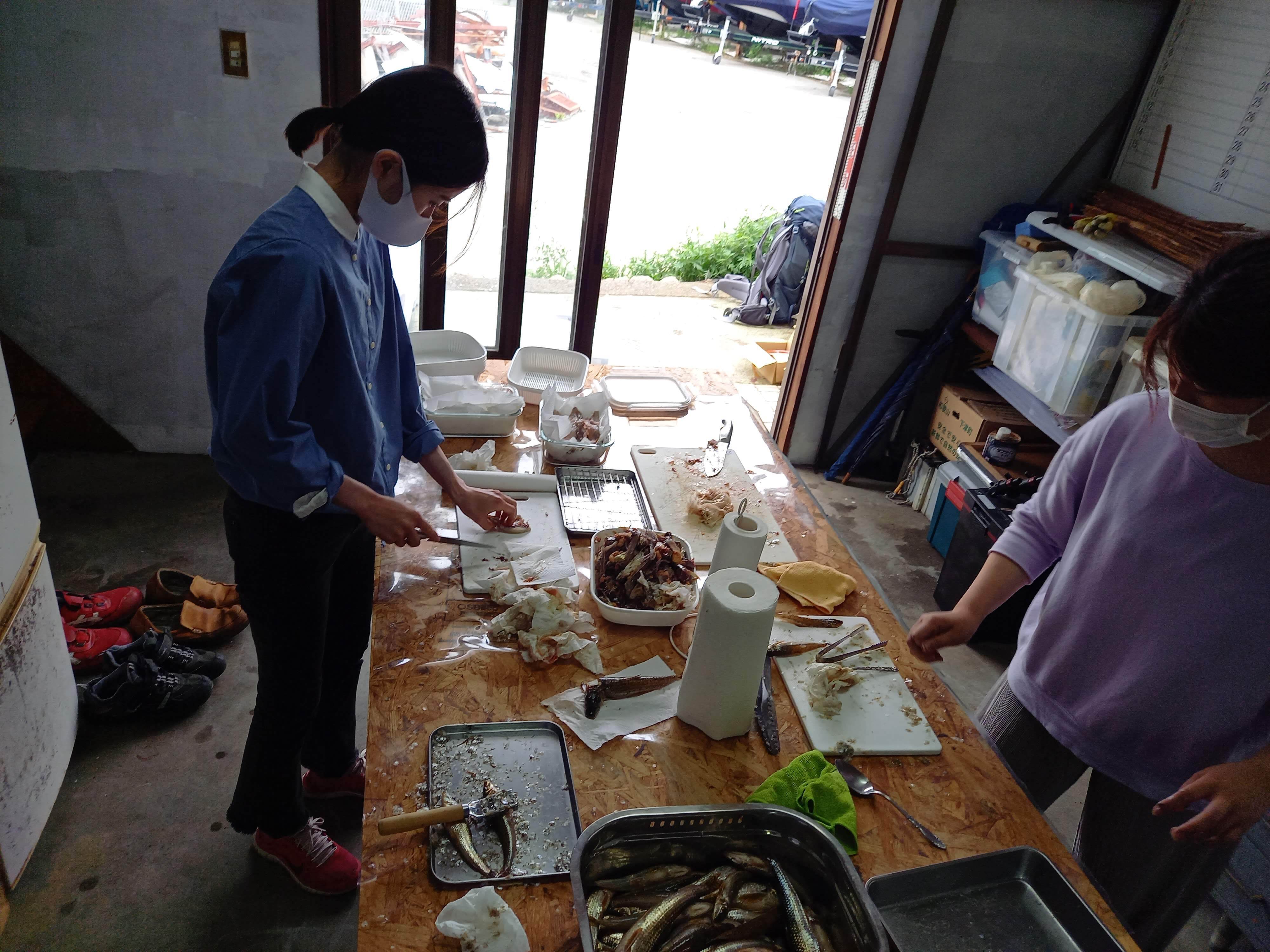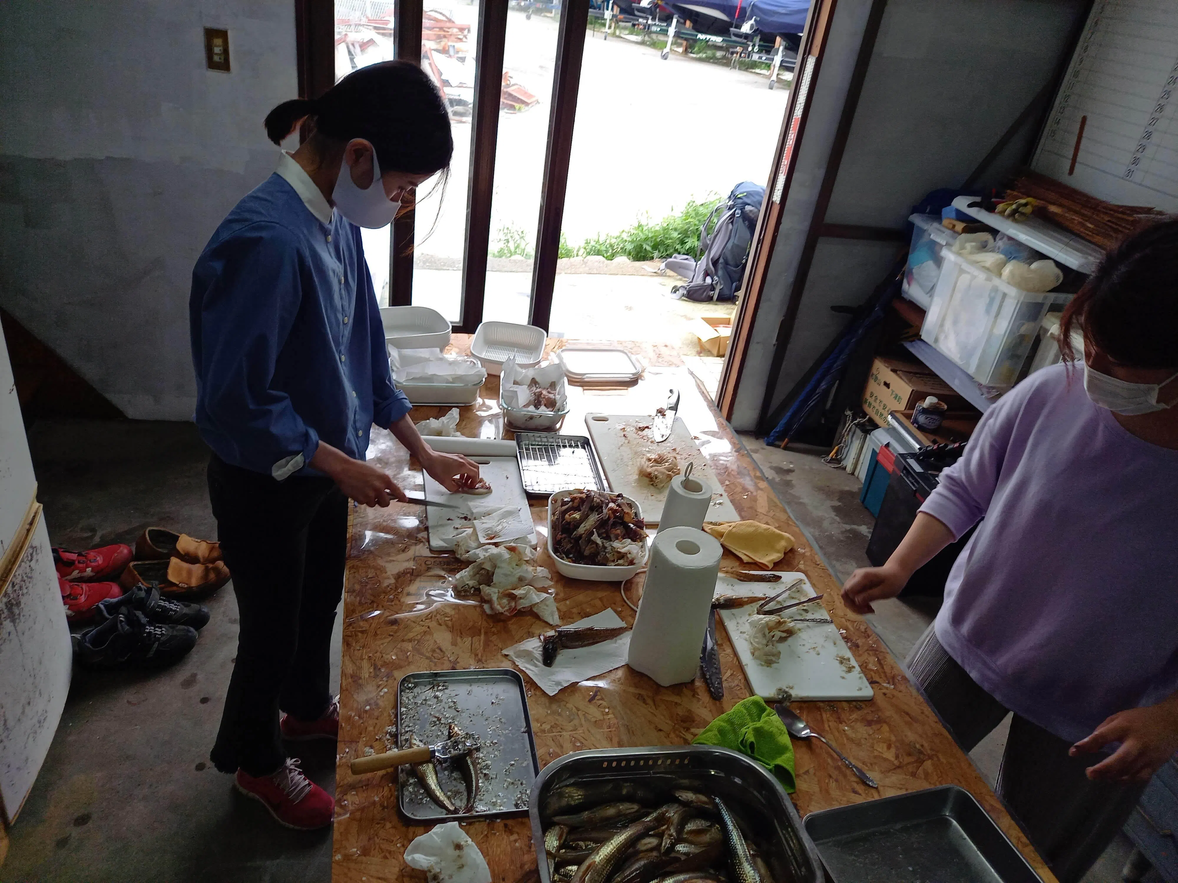 水産加工の方たちと湖魚の加工、調理実験を行うことも。