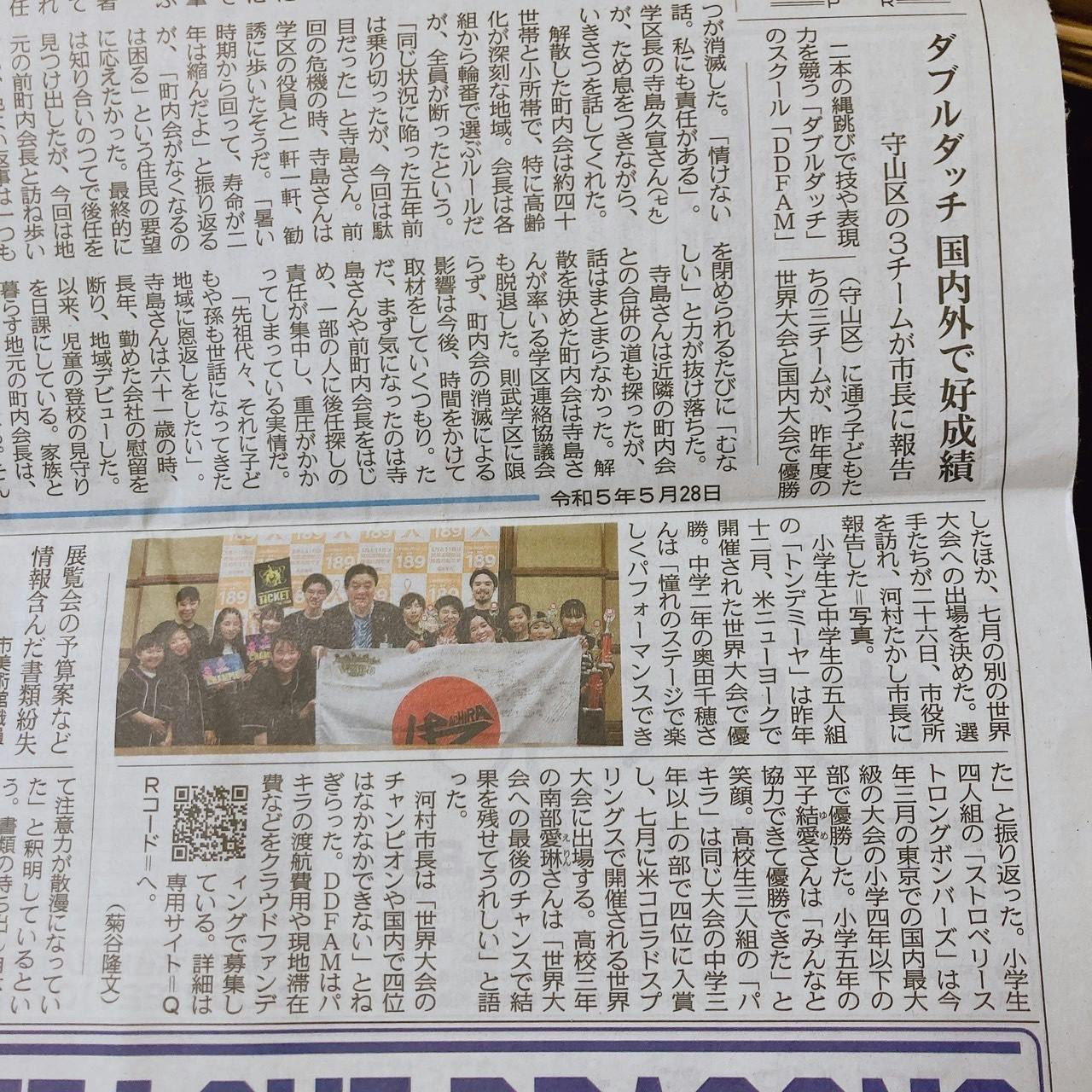 先日の名古屋市表敬訪問の様子が中日新聞の朝刊に開催されました!