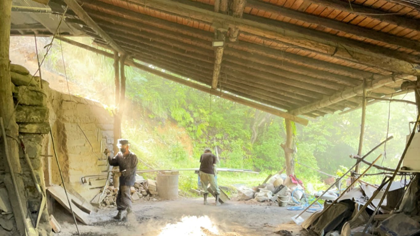2基ある窯は消火の影響で傷み、修理が必要です。