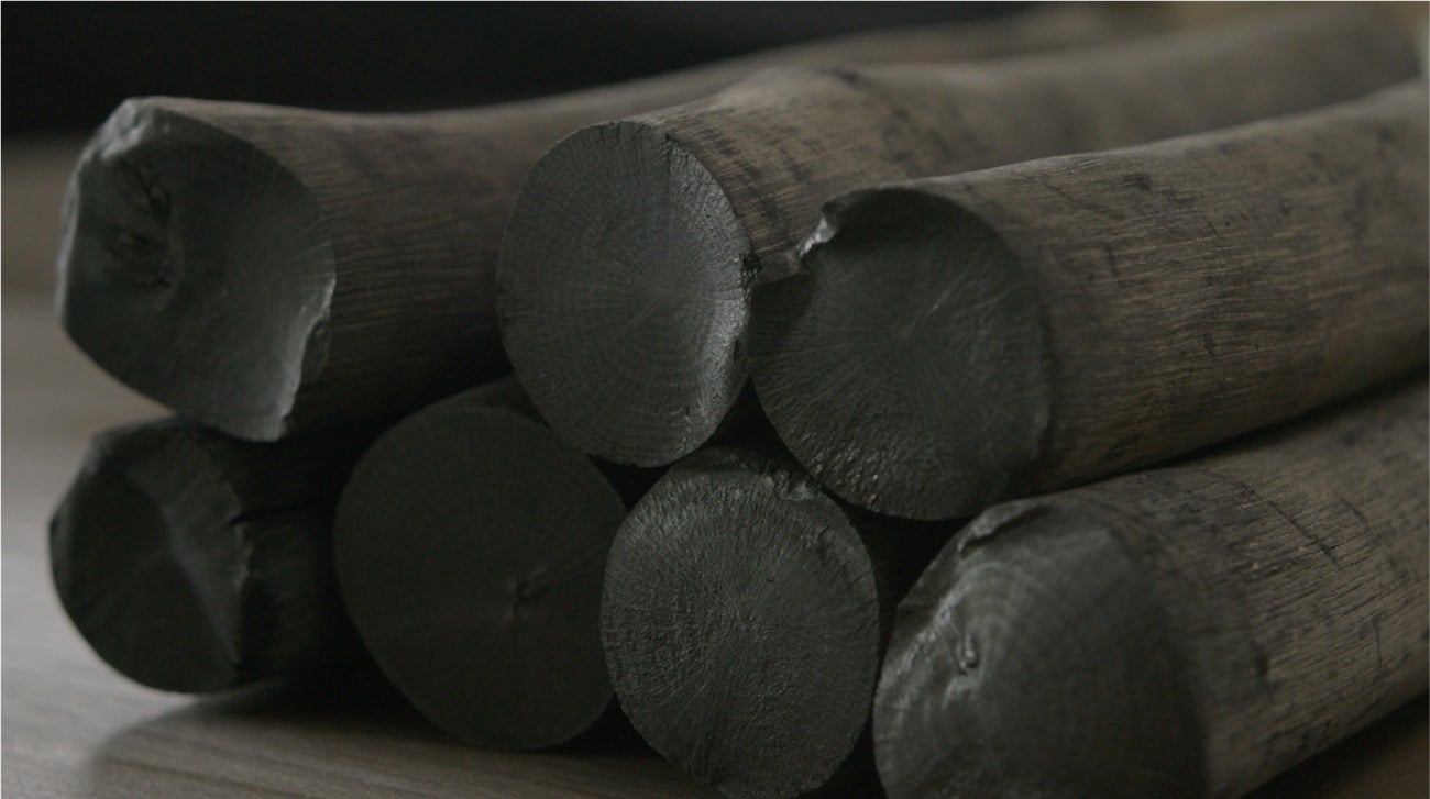 木炭(黒炭)は300〜700度で焼き上げます。それに対し備長炭は1000度以上の高温で丁寧に焼き上げることにより、不純物や油分などが少なくなり、煙を出さず安定した燃焼が長時間続きます。