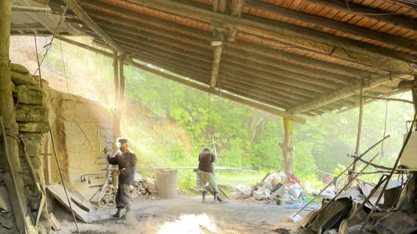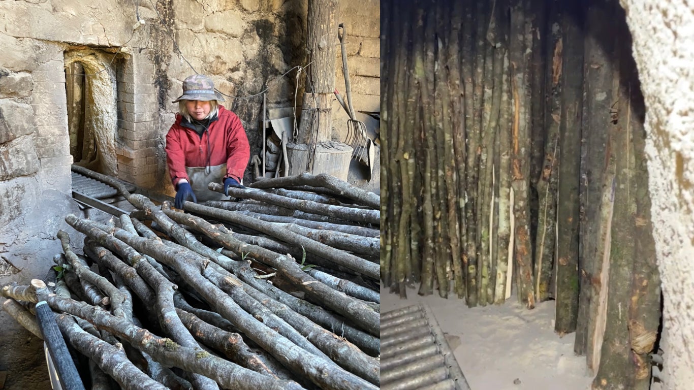 2基ある窯は消火の影響で傷み、修理が必要です。