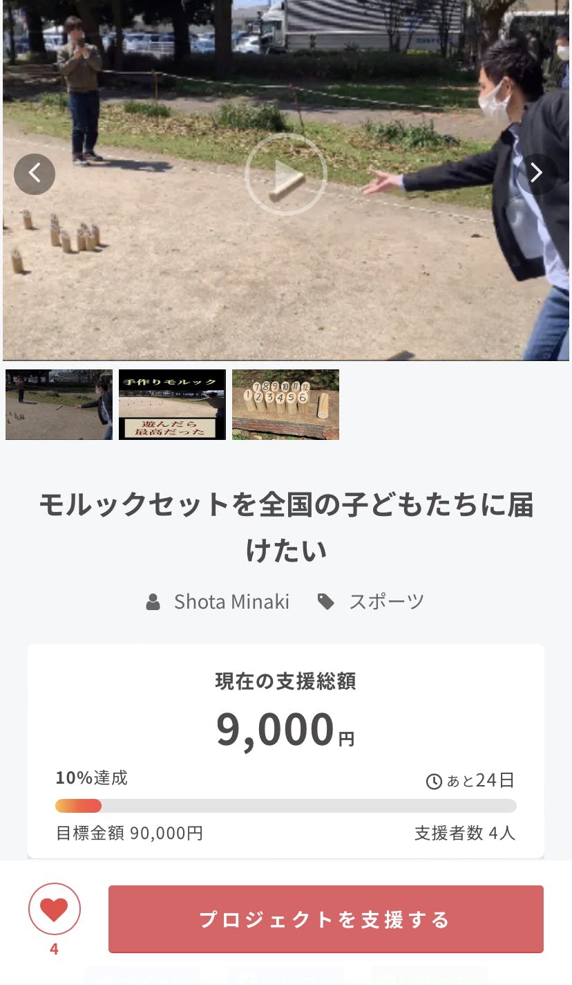 まもなくスタートから24時間が経ちますが、おかげさまで4名で10%(+paypayで1名直接2,000円の)支援額が集まりました。ありがとうございます!