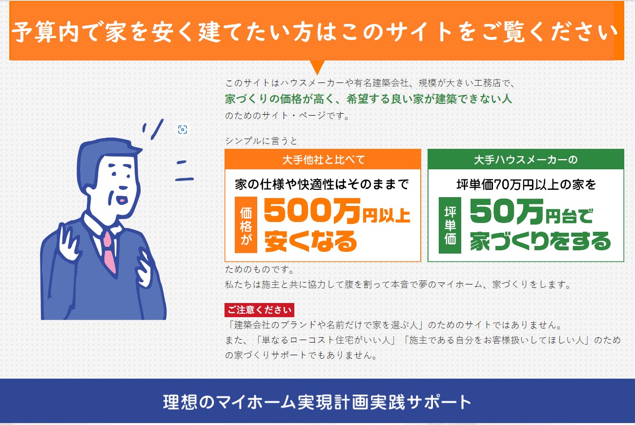 今までの実績ではこの学べる家づくりホームページで学ぶと大手ハウメーカーと同等の家が500万円~700万円安くなる家づくりが可能になります。
