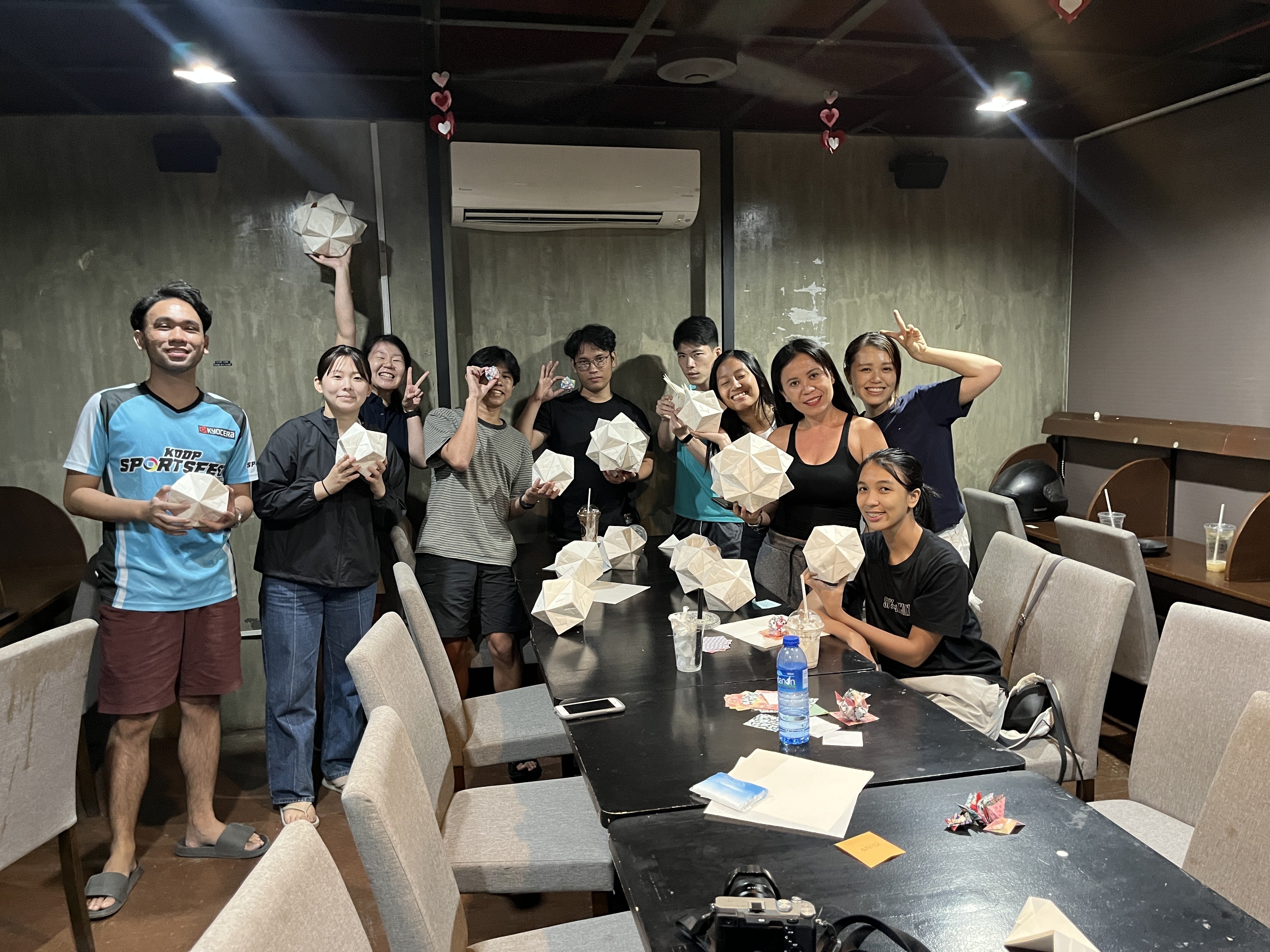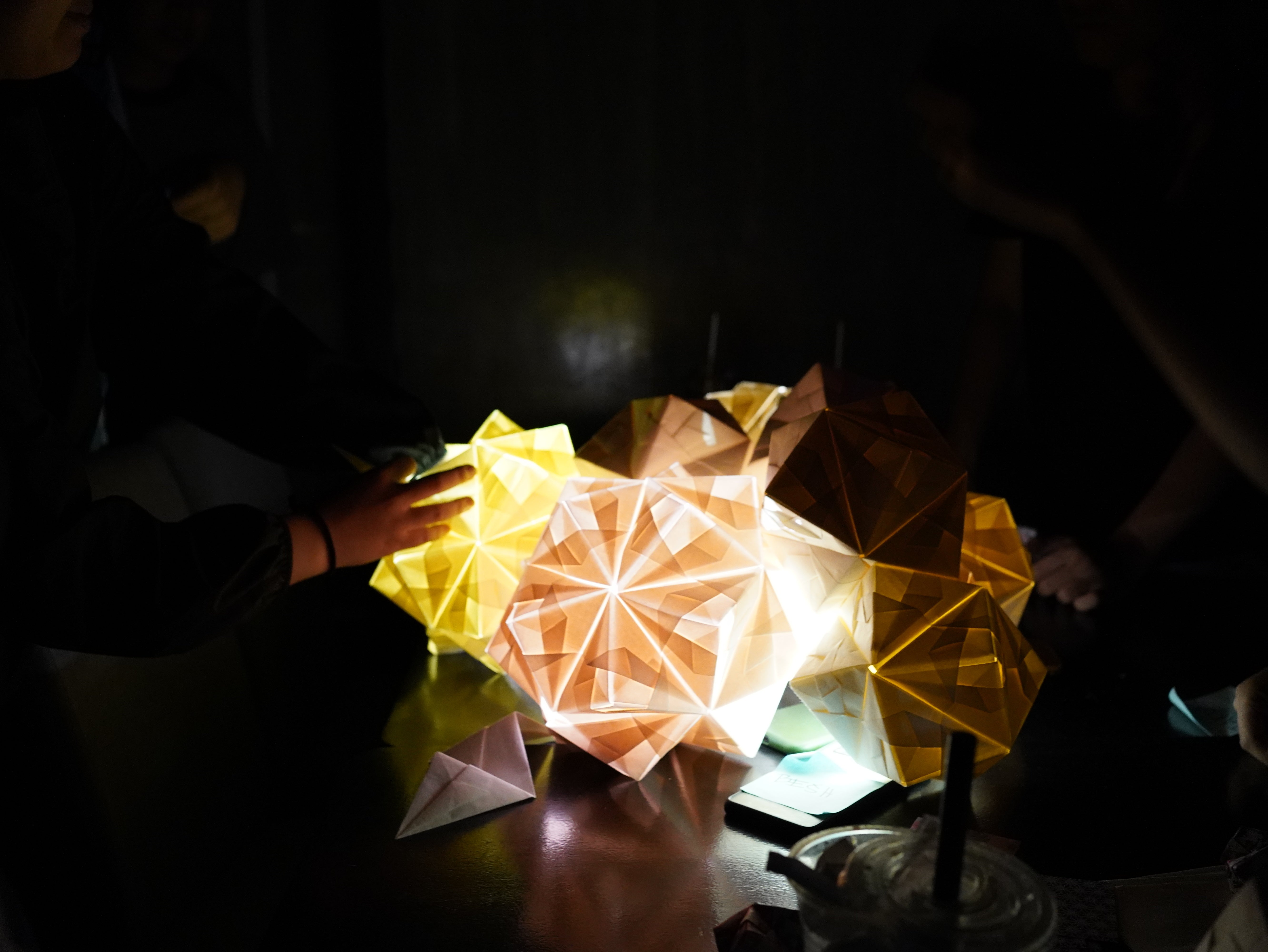 4月23日、計13人のボランティアさんが集まってくださり、第1回目のワークショップ「ペーパーランタン」の作成を行いました。日本の伝統文化である「折り紙」初めは慣れない作業で大変でしたが、全員で協力して、約10個のランタンを作り上げました✨