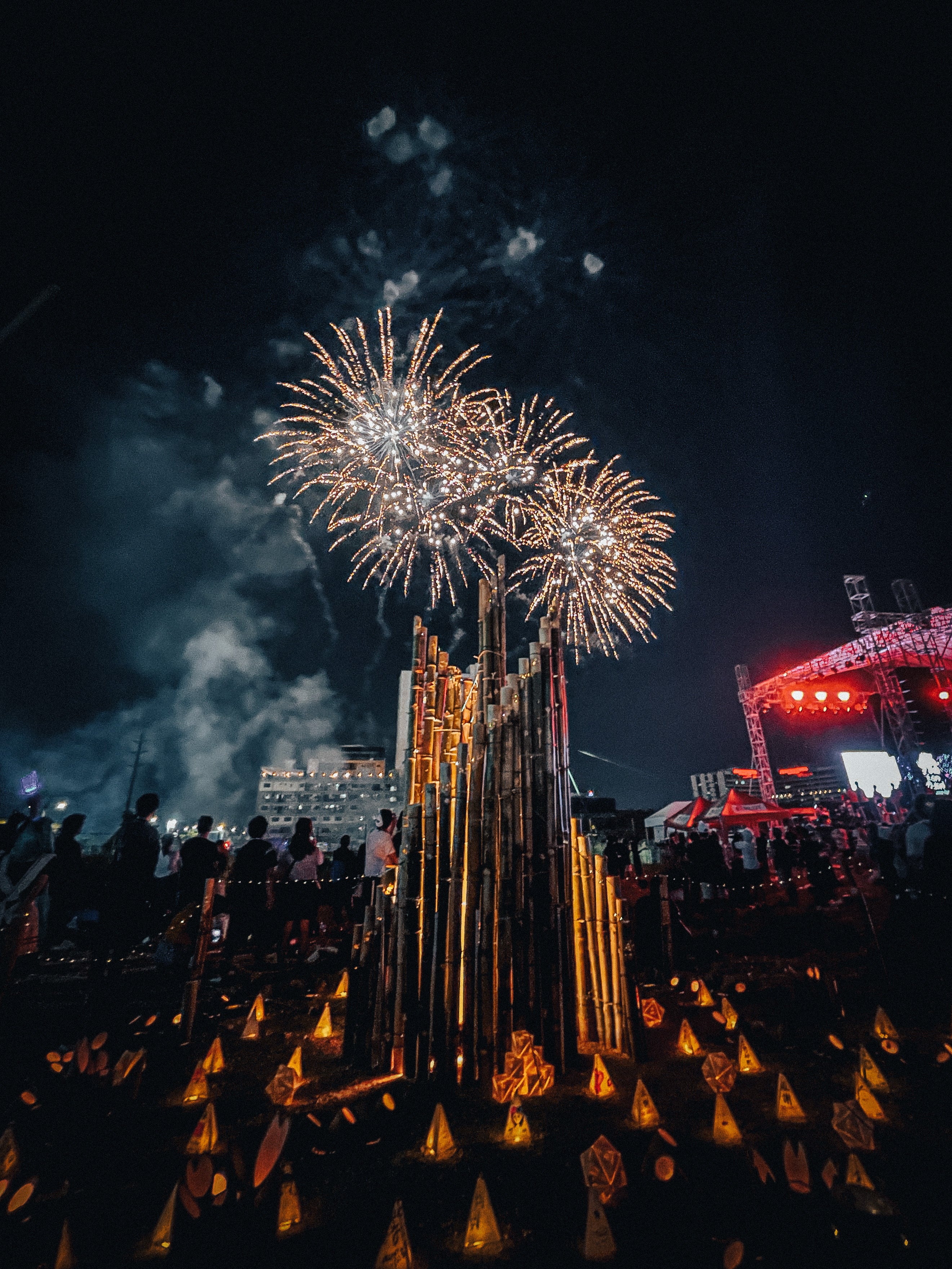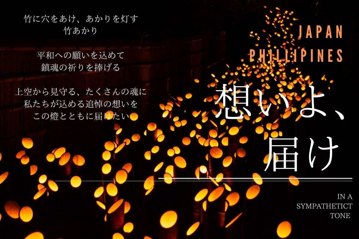 竹に穴を開けて、中に明かりを入れ灯す竹あかり。平和の願いを込め2023年セブ盆踊り大会の会場内で空間演出を行う。慰霊塔、その周りを照らす灯籠を作成。さらに当日来場者にも参加いただき、竹あかりを完成させる。上空から見守る、たくさんの魂に、この温かい明かりを届ける。