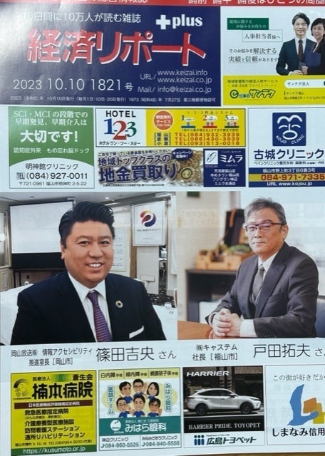 広島と岡山で広く読まれている経済情報誌で10日間に10万人の方が読まれている雑誌です。