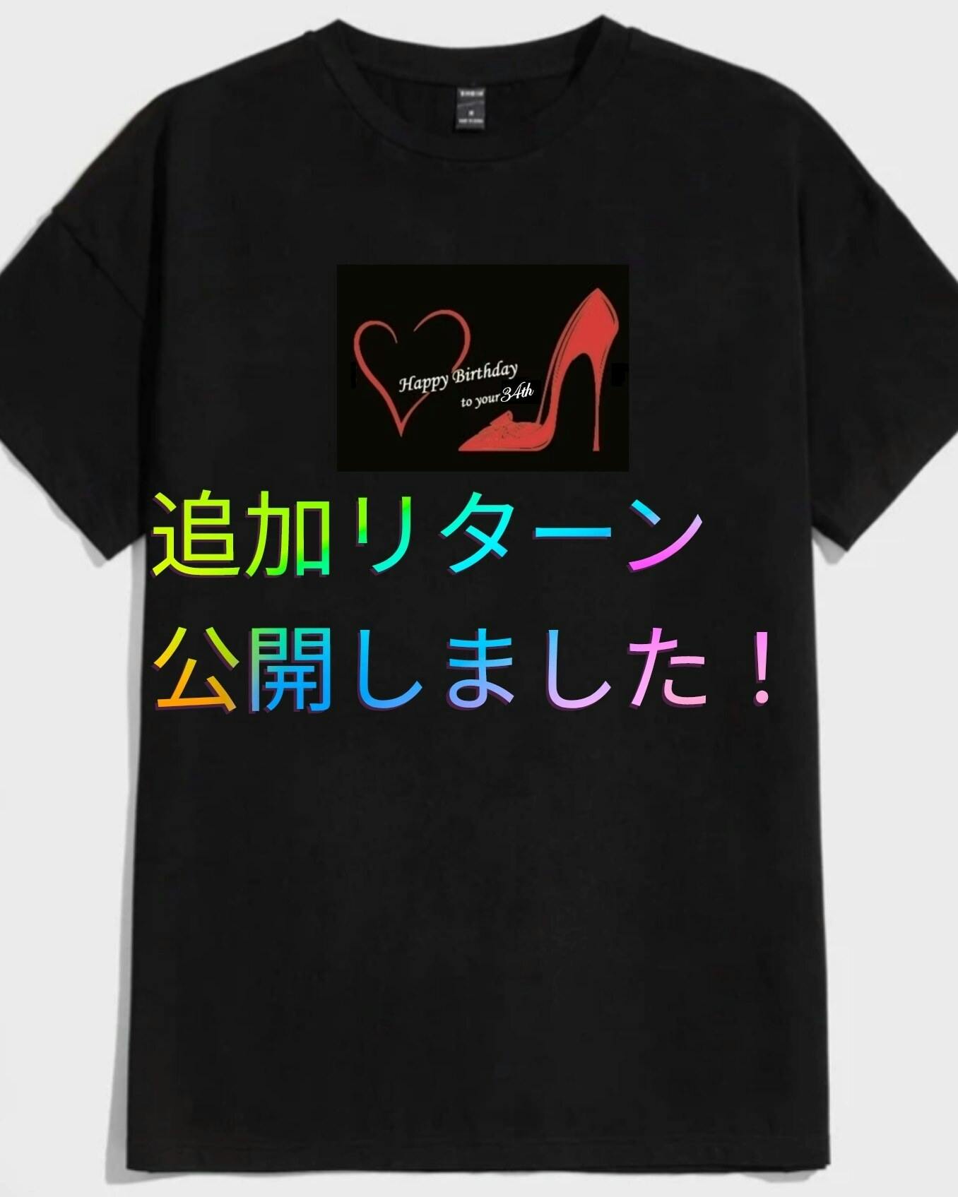 追加リターン「BirthdayTシャツ」に限定数は設定しておりません。ご希望くださる皆様全員にお迎えいただけます。34歳のお誕生日記念のBirthdayTシャツへのご用命をお待ちしております。