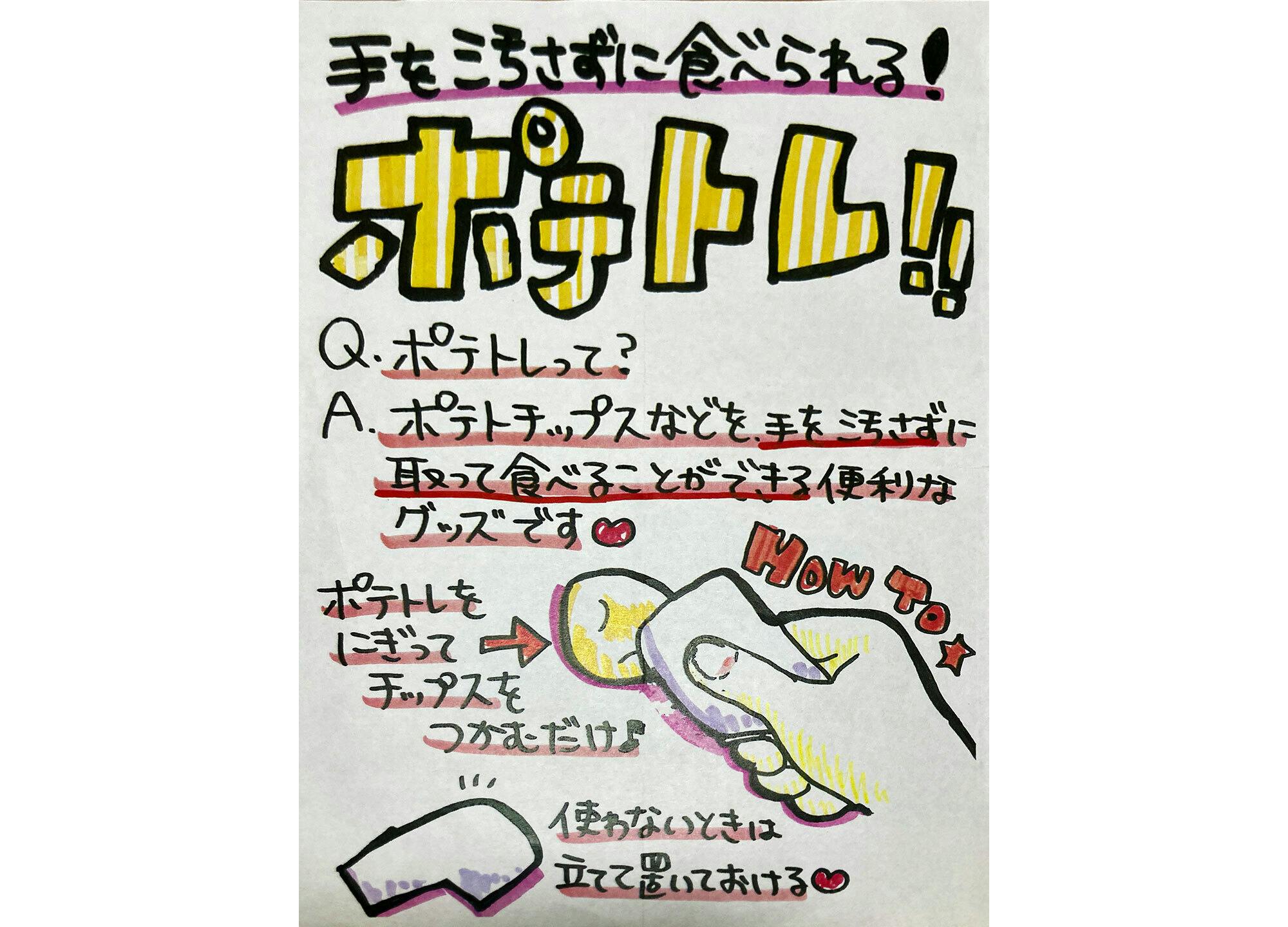 上記写真は発明者様のご友人がポテトレをイラスト化してくれたものです。