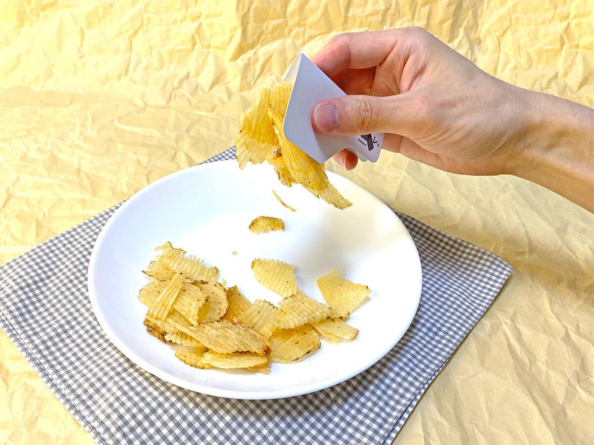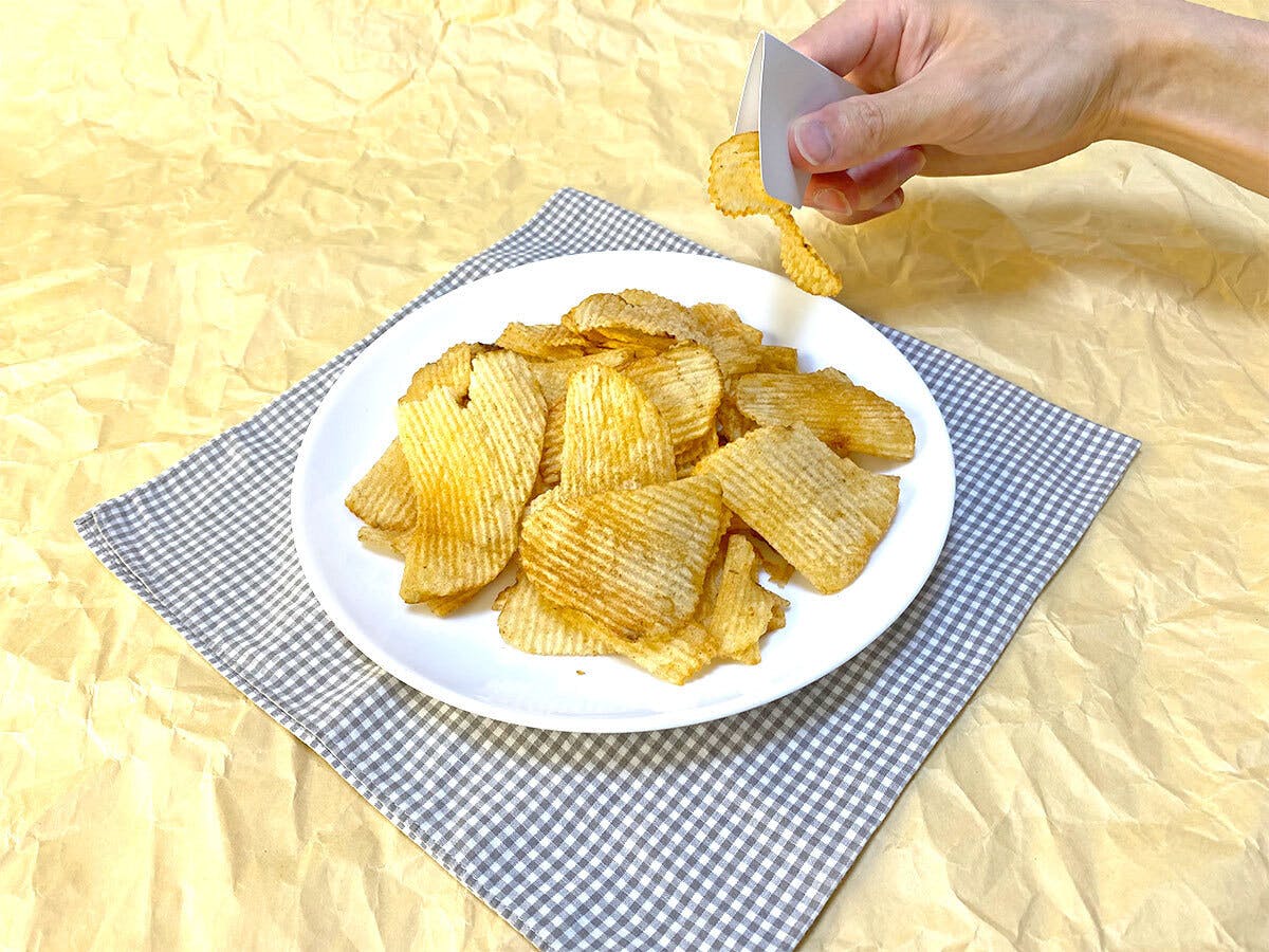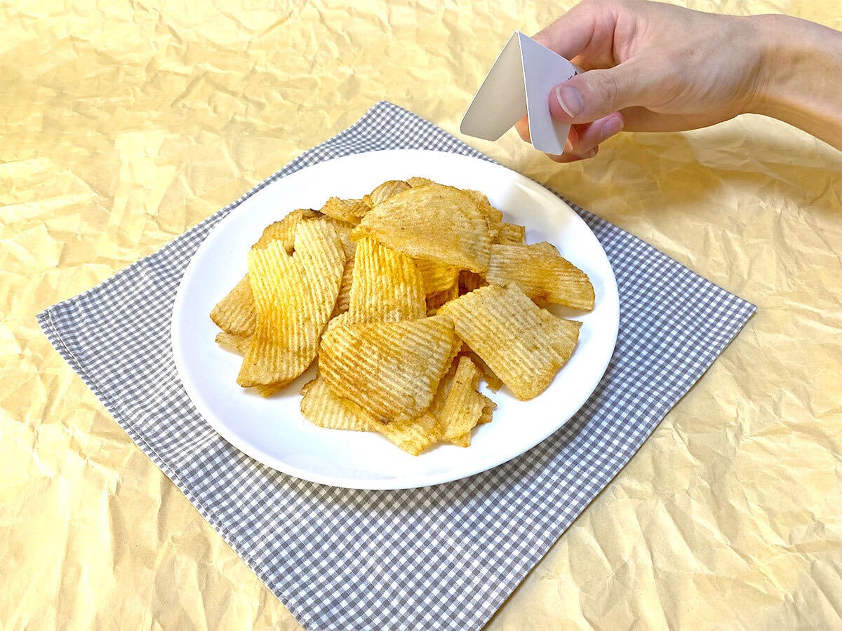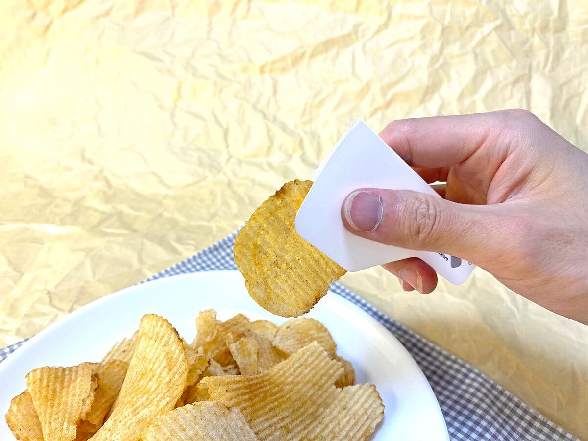 サクッとポテトチップスなどのスナック菓子を食べられるコンパクトな紙製のトングです。