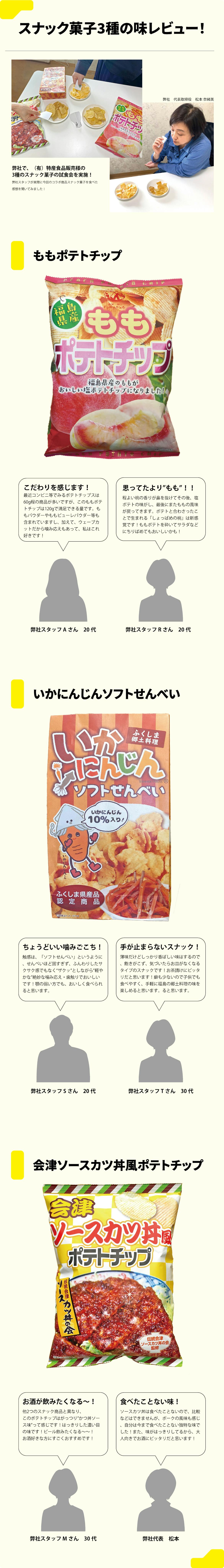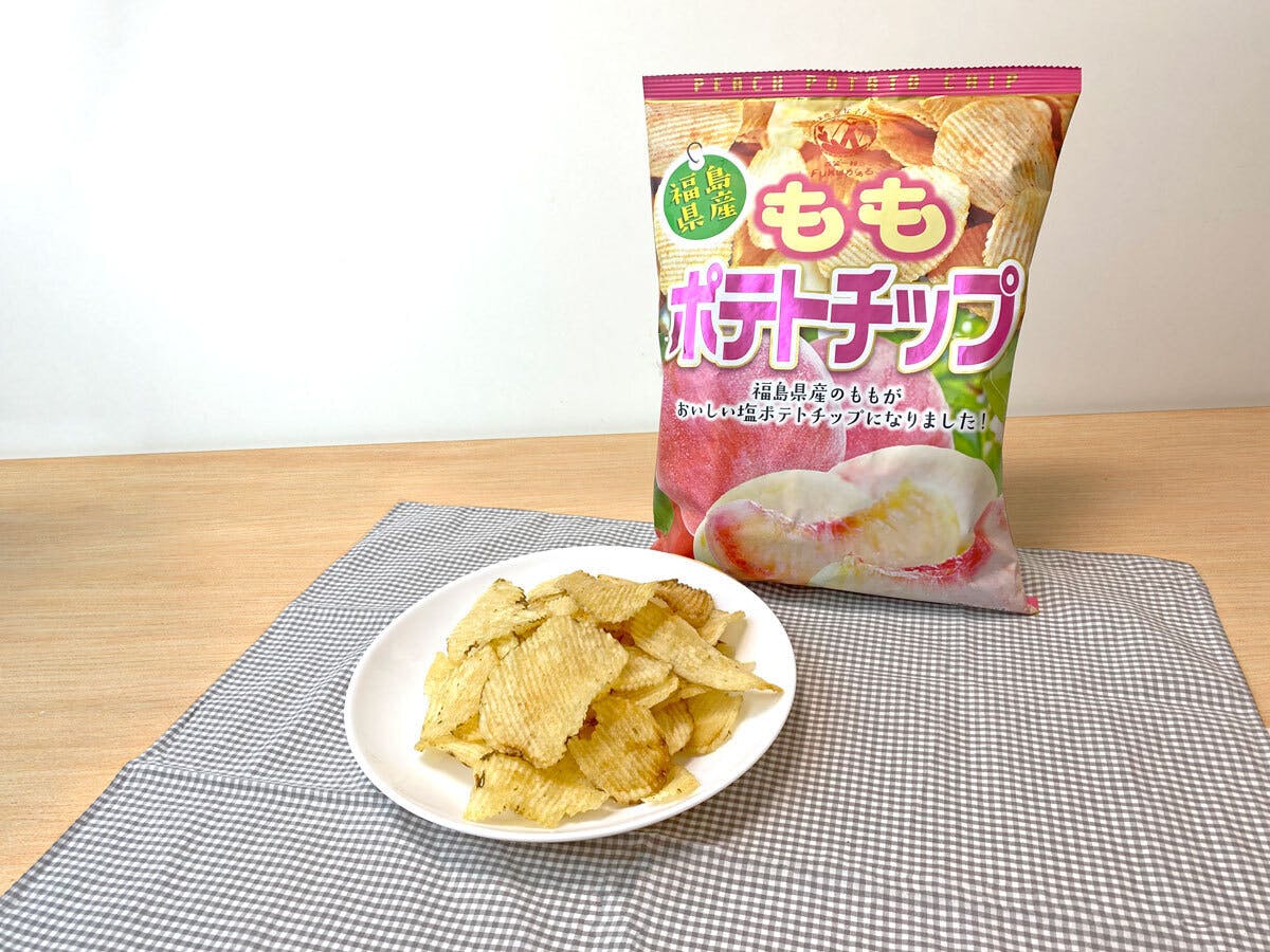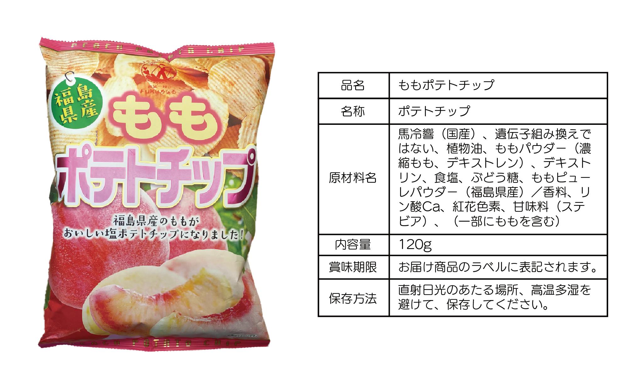 ももポテトチップスはその「ふくしま農業女子ネットワーク」のメンバーが自信と誇りを持って作った福島特産の桃を、ピュウレにしてパウダー加工したものをポテトチップにしました。試作・試食を何度も繰り返し、
