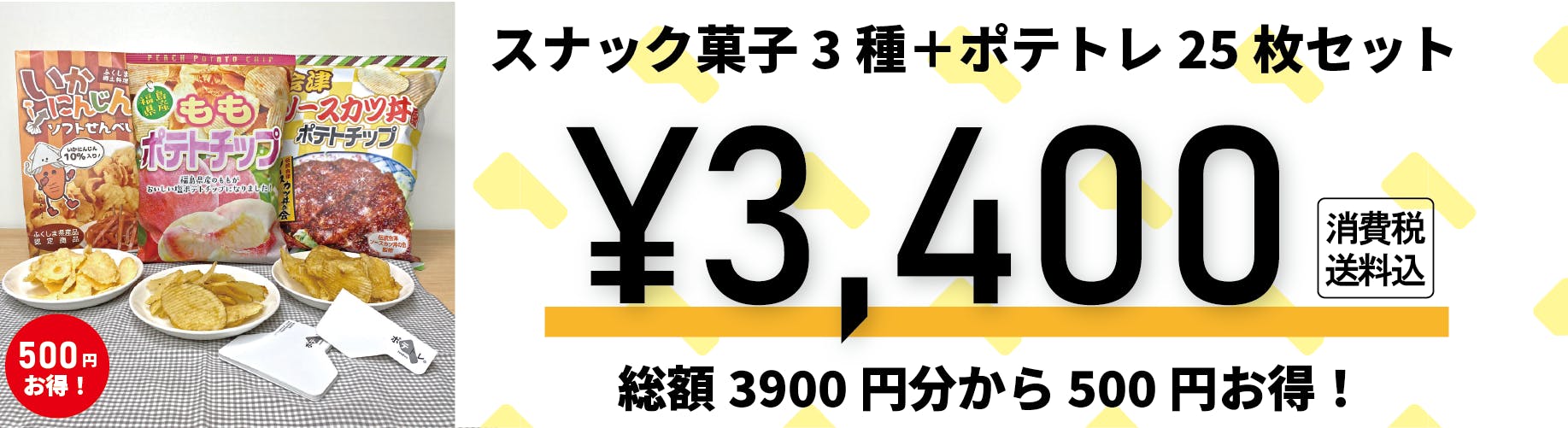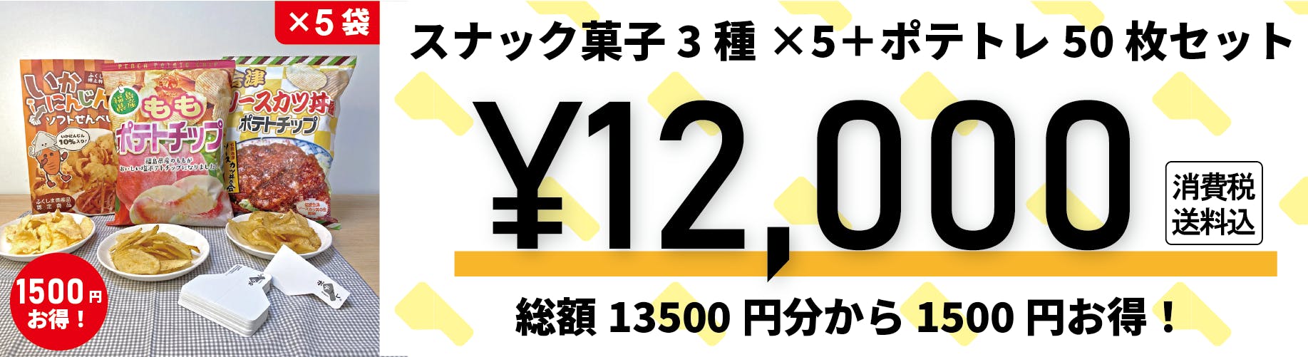 スナック菓子3種+ポテトレ25枚セット:約25cm×35cm×20㎝(縦×横×高さ)
