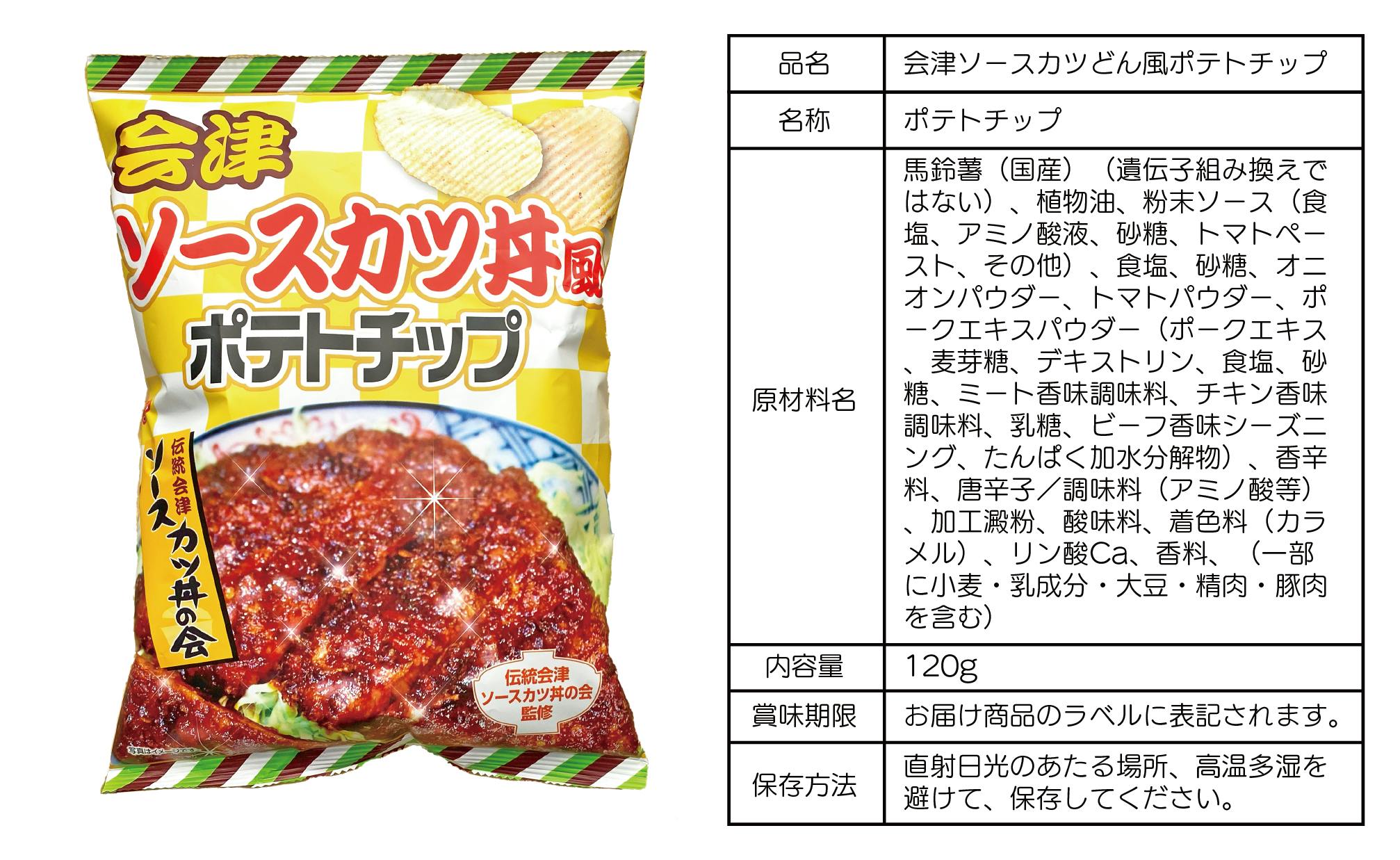 パッケージには、のぼり旗、ロゴマークも入り、ソース味は「会員様にソースを提供」いただき、何度も試作を重ね、納得の味付けになっています。このポテトチップを食べて、やみつきになったり、会津を訪ね本場の「会津ソースかつ丼」を食べたくなったり、ビールなどお酒のつまみにといろいろな楽しさが味わえます。